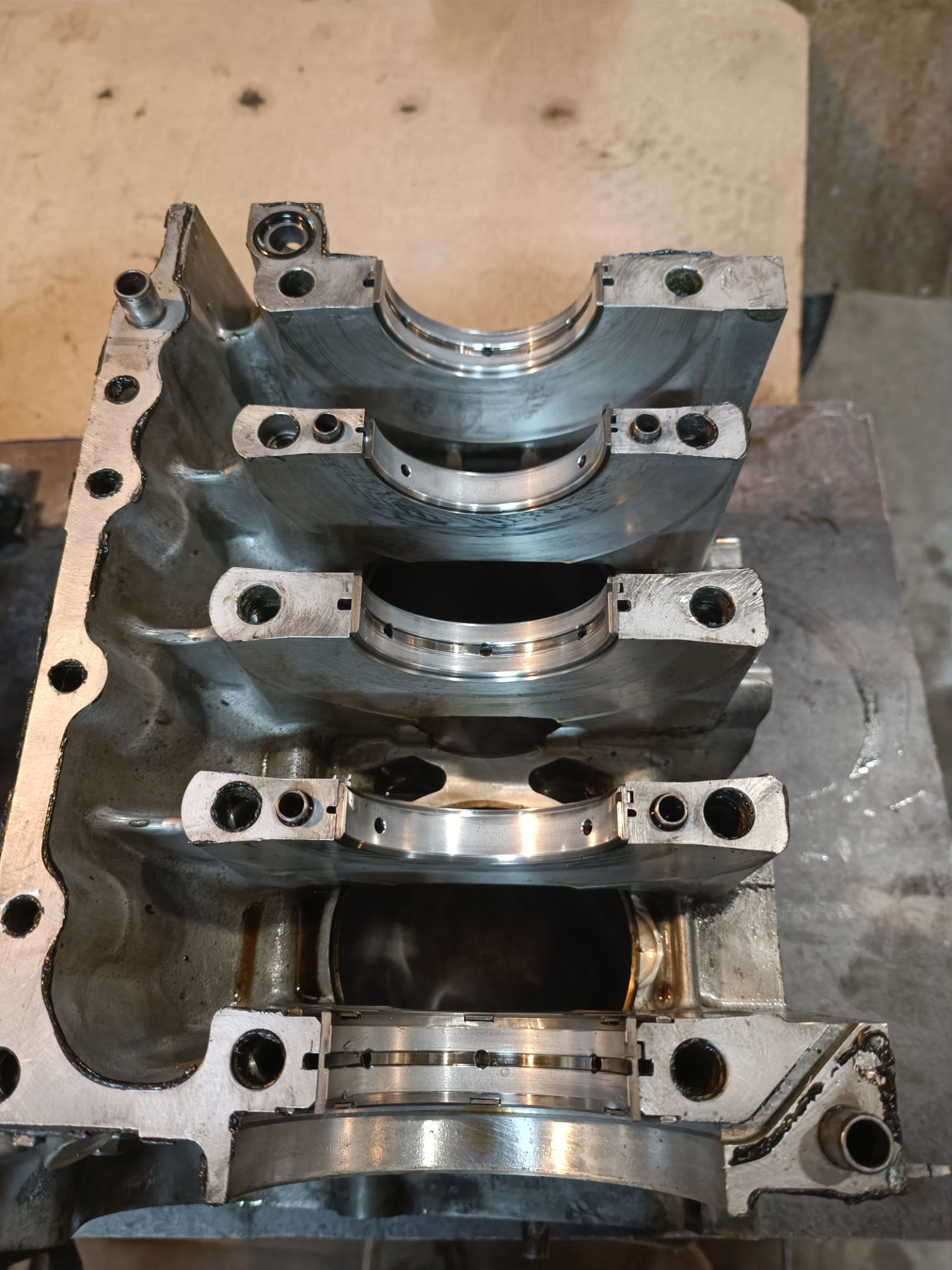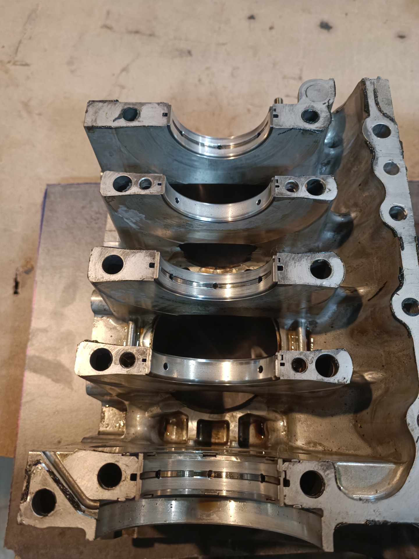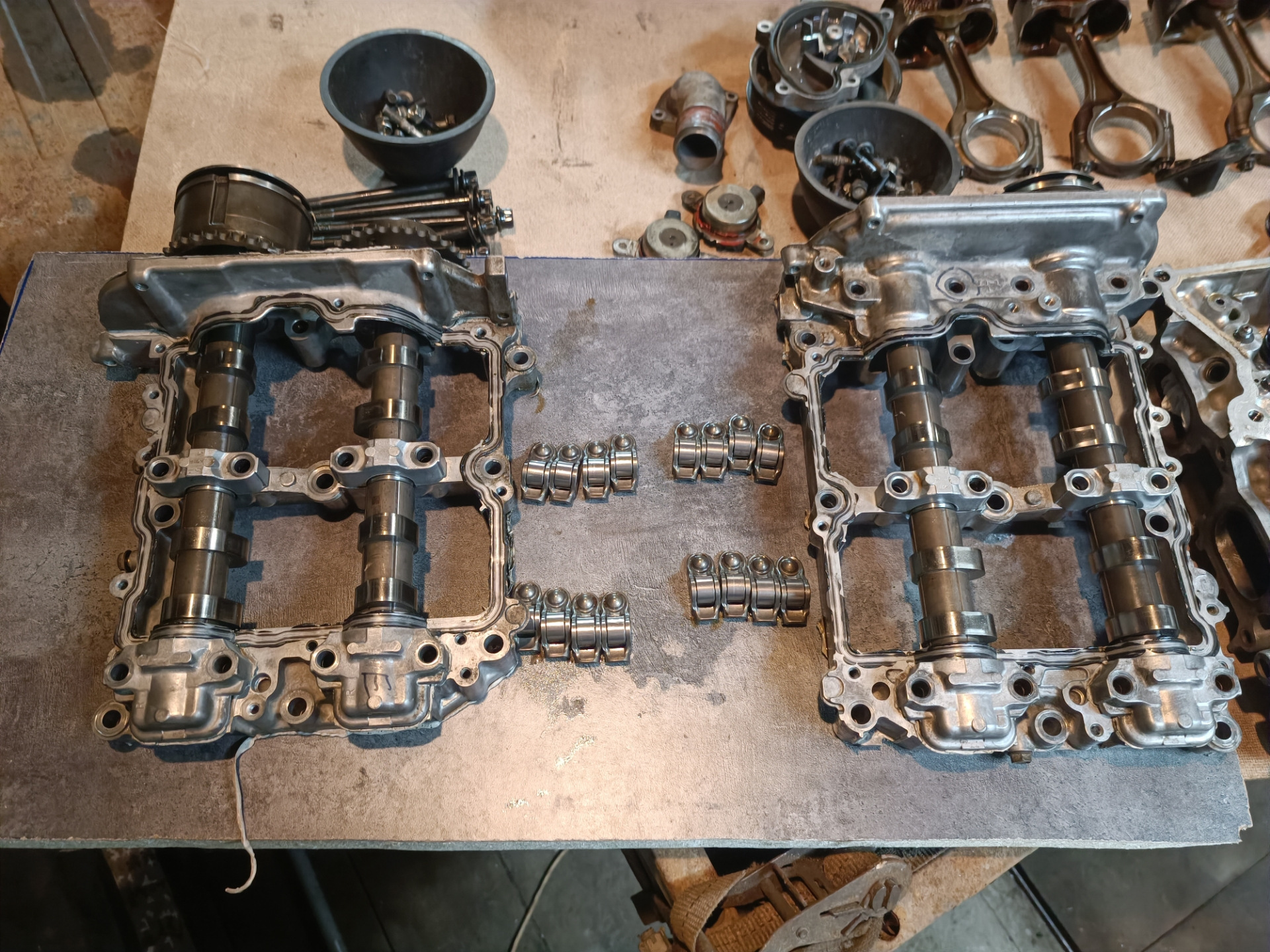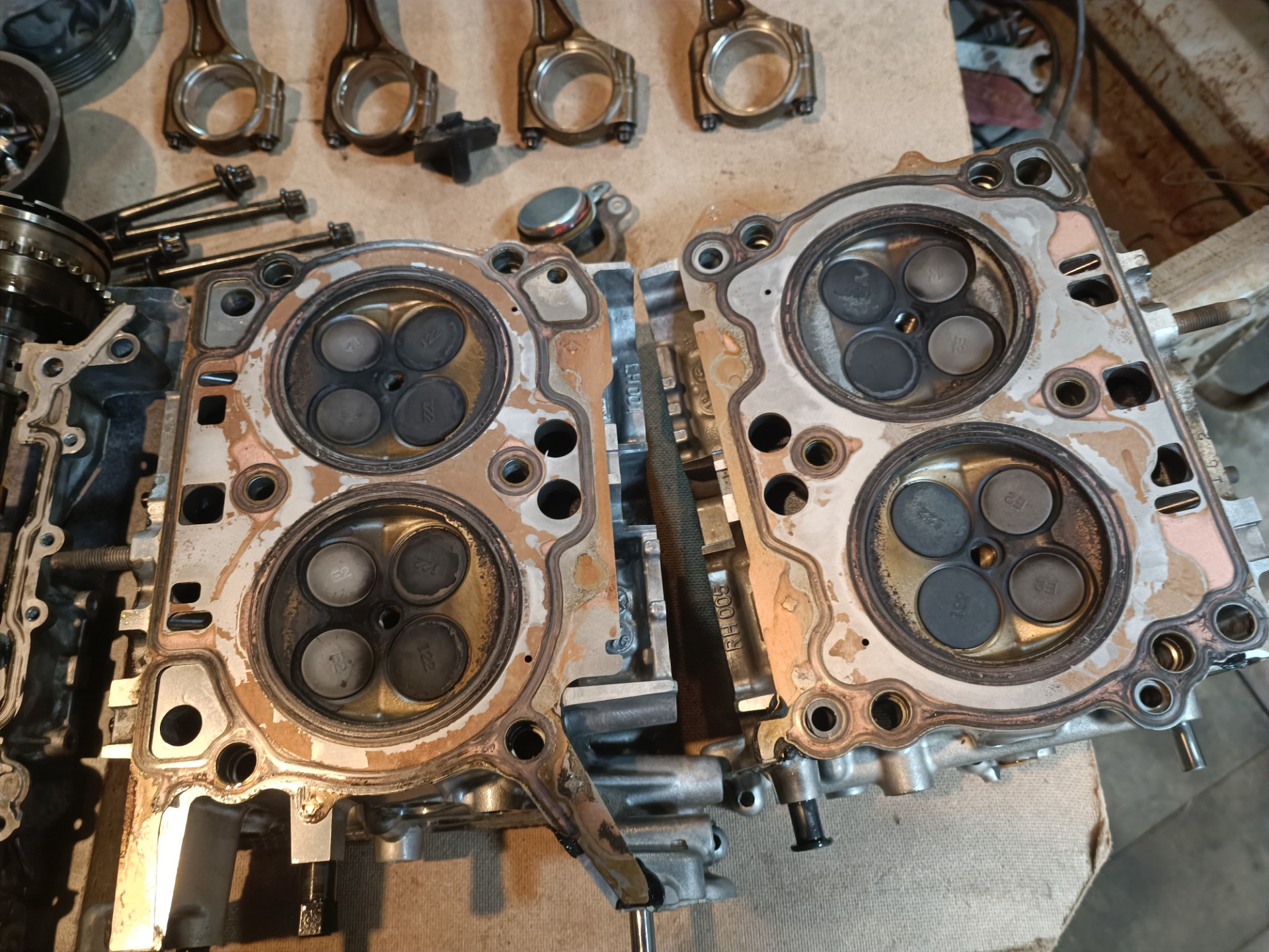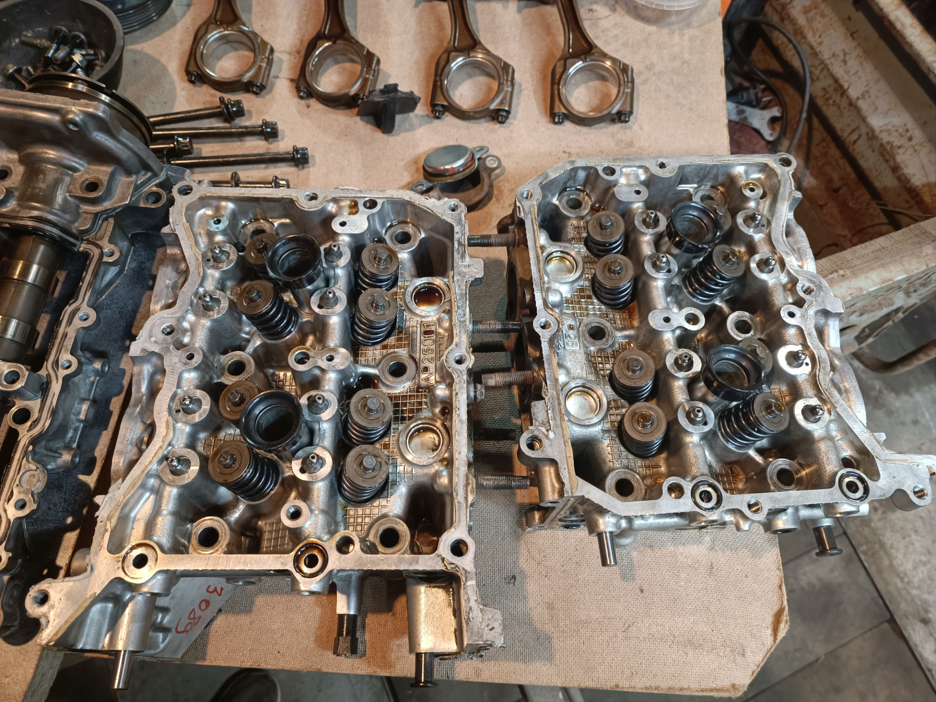 Разобрали, вскрытие показало что в блок уже лазали до периода моего владения. Стучал же шатунный вкладыш на 2 горшке, блок и колено без серьезного износа, в допусках. Решил обойтись без расточки. В результате замена колец, вкладышей, 2х поршней, ремонт голов (менялись клапана, направляющие, колпачки, ремонт резьб и т.п.), замена комплекта ГРМ, прокладок и т.п. После сборки проехал 9000км и провернуло шатунный вкладыш, на колене задиры которые как сказали в мастерской не лечатся.