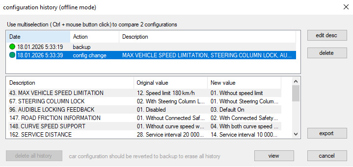 Для правки параметров необходимо иметь PIN модуля CEM и подписку на vTool. Для моего года выпуска (MY2021) потребовался приезд к Антону для снятия CEM и дешифровки. Процесс снятия блока, декодирования с последующим возвратом занял менее часа. По итогу имеем PIN, установленное ПО на ноутбуке и аналог VOE (Volvo OBD to Ethernet Adapter 9513108), для подключения к ODBCII, заказанный на Ali. Если у вас куплена подписка, в приложении открываются дополнительные функции по изменению параметров автомобиля, причем должен быть доступ в интернет для связи с сервером, где сохраняются "родная" конфигурация и журналы изменений.