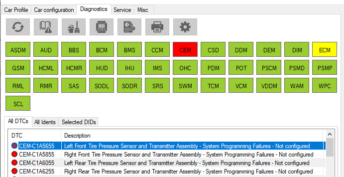 Изменил вторую партию параметров, успешно избавился от "стандартной" ошибки с IHU/проекцией, но сохранилась связанная с датчиками шин .