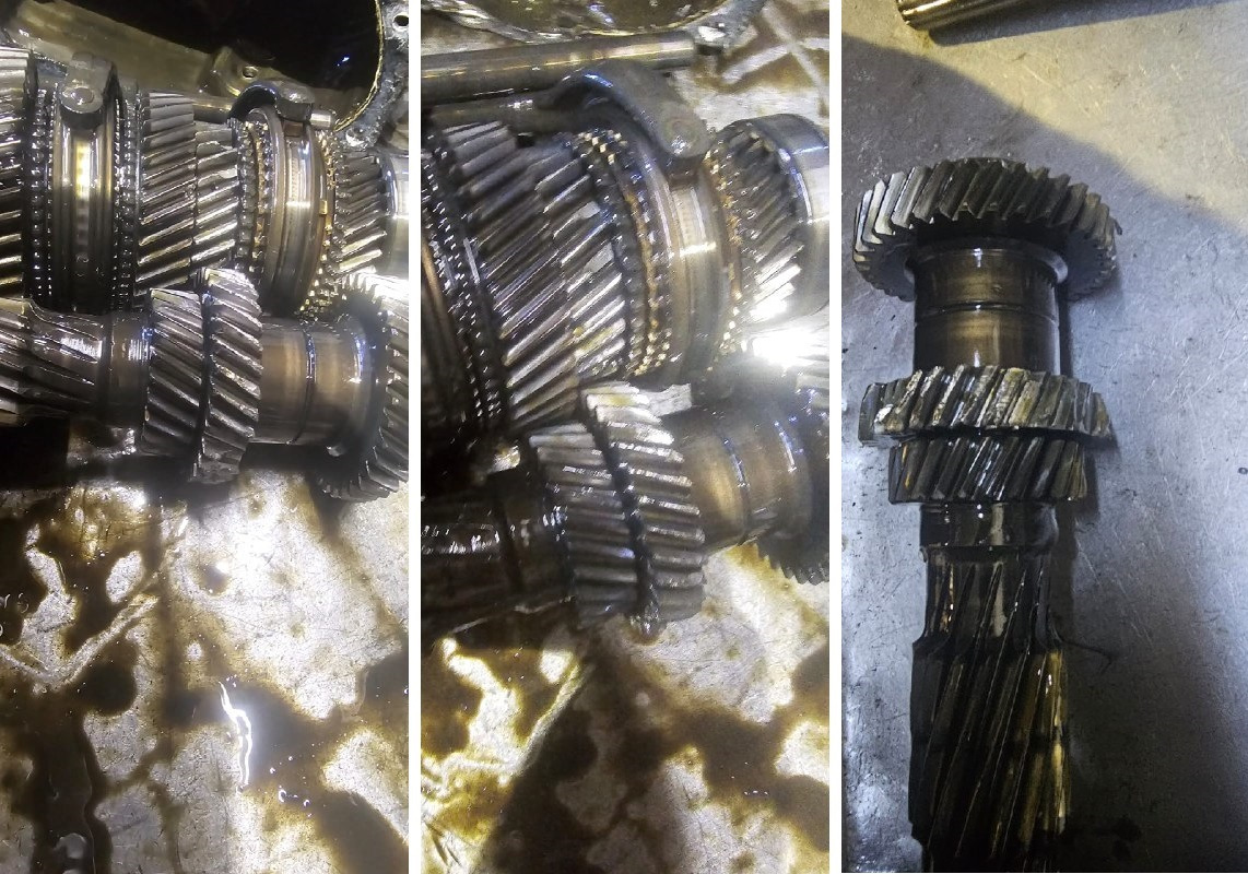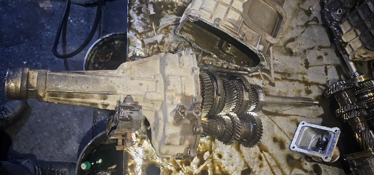 Утро. Решил снимать коробку. После снятия слил с нее масло, как и ожидалось в масле были найдены осколки шестерен. Далее искал место, где нормально починят 2-х составную коробку Газель Cummins. Нашёл кто возьмется, коробку отвезли на ремонт. Попросил мастера перед тем, как что-либо менять, сфоткать масштаб повреждений. Там все шестерни в труху или только одна?