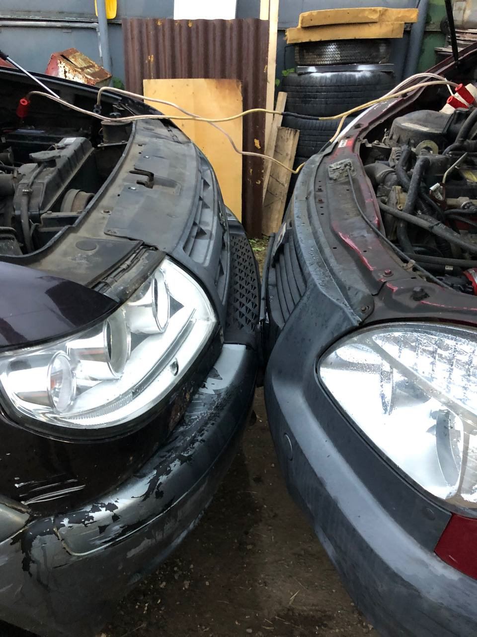 Закончил уже когда светало, собрался ехать домой, а стартер предательски щелкает и не спешит стартовать двигатель. Старый аккумулятор и переноска с лампой накаливания подключенная к моему аккуму за несколько часов сделали свое дело. Благо сосед по гаражам был на смене сторожем и своим Патриотом "прикурил" меня)