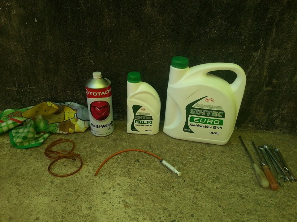 В общем, приступил к делу. Откачал всё шприцем, снял верхний шланг, заткнул дырку от него подлил… ну вроде готов к замене.