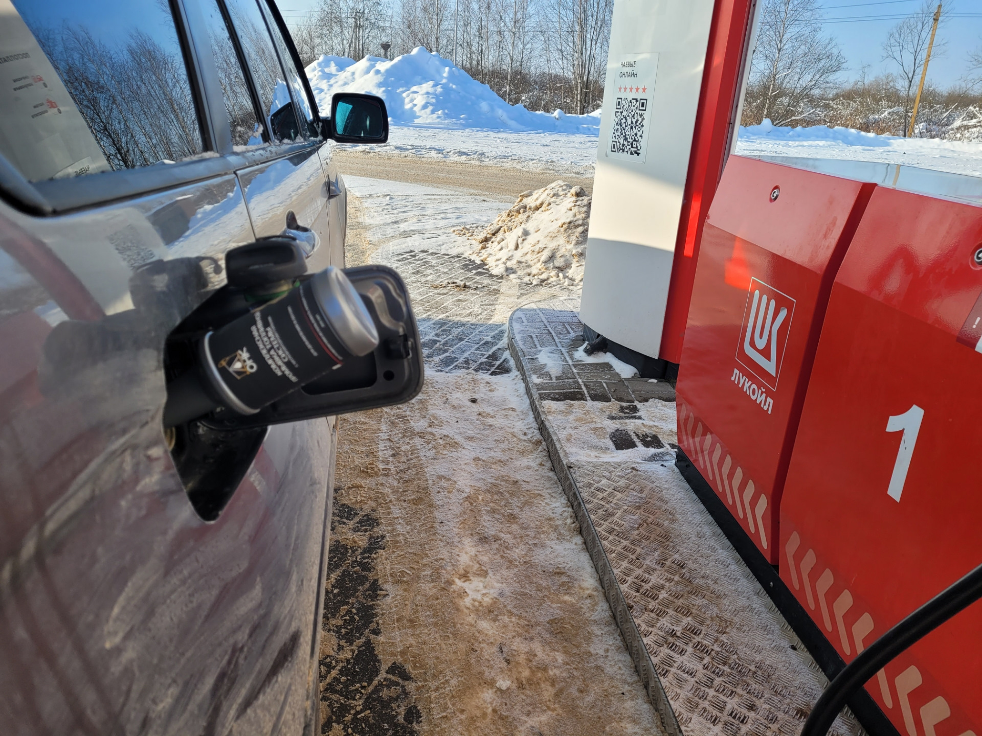 После получения заветного флакончика отправился прямиком на заправку . Бензин как раз был на исходе . Все по инструкции, вылил содержимое флакона в бак, залил 70 литров бензина, и в путь .)