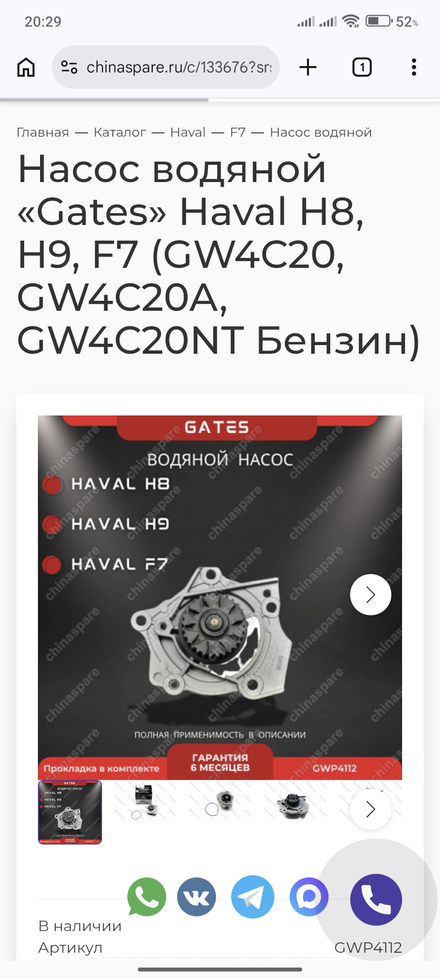 Добрый вечер. Эта помпа точно подходит? По тому как выдает ориг артикул, как будто другой. Сегодня супруга встала на хавал ф7 2л 1ген. Не перегрела вроде, буду менять сам.