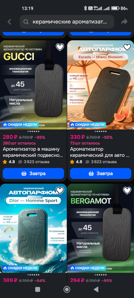 Я не знаю что у вас за цены, я покупаю по 100-150р за штуку. Аромат держится больше недели, просто ты уже к нему привыкаешь. Ну это лично мои наблюдения и мое мнение, что проще и лучше взять картонки