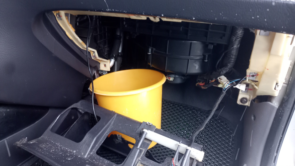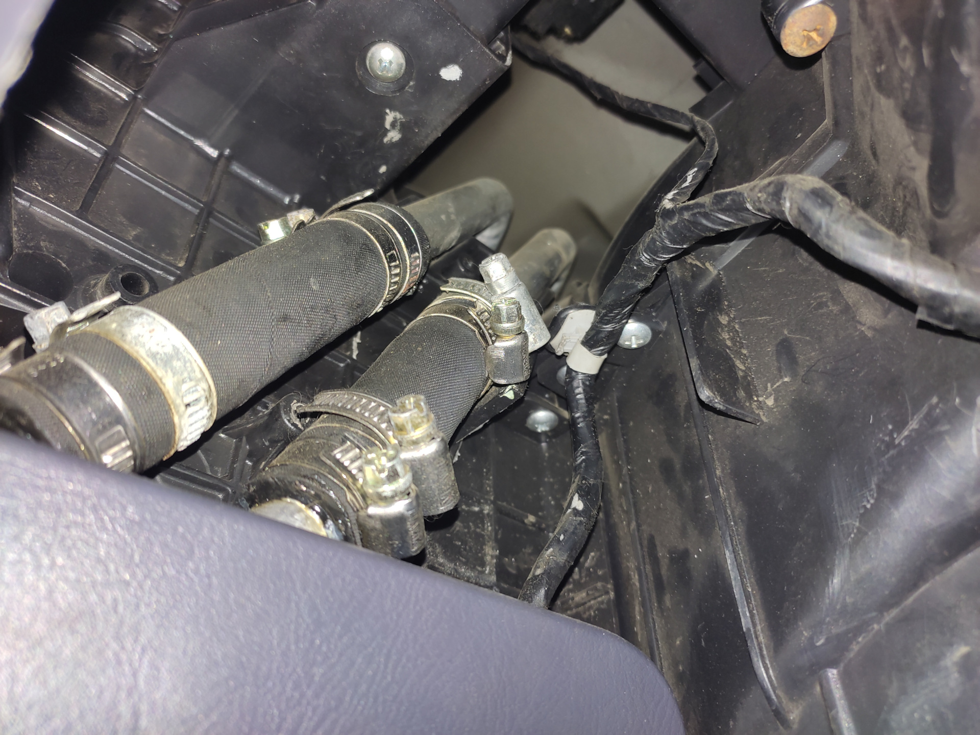 Всем привет. Ничего интересного не будет, просто знайте, что рано или поздно вас тоже это ждёт. Какой то хрен примерно 120-130 лет назад изобрел самозажимной хомут, но почему то большинство продолжают ставить червяки. Слышал много историй что их ставят на пыльники шрусов, на патрубки системы охлаждения, шланги Гура и всё такое. То есть их пихают туда, где они вообще не нужны. Почему так делают, без понятия. Замена этих шлангов на долгая и не сильно тяжёлая, просто вот она нафиг не нужна. Лучше сделать один раз и забыть (конечно лучше сделать замену радиатора печки целиком, чем изобретать порнуху, но…). Заодно заменил фильтр салонный. Вытащил радиатор печки, промыл там всё обезжиривателем, вытер как смог достать. Пробку будем выгонять попутно с дорогой на работу. Раз уж радиатор пиленный и выглядит со стороны это вообще никак не красиво, то может есть вариант как это всё закрыть?