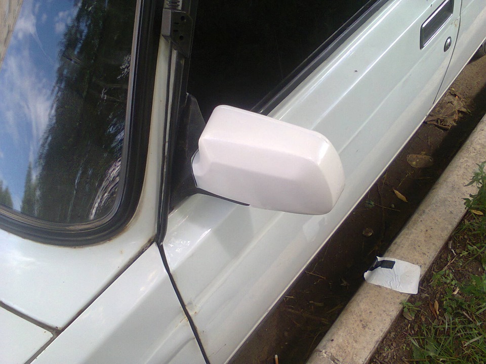 Взяли два балона черной и балон белой краски. Колеса в черный, зеркала в белый) Ну и по мелочам которые не стал фоткать, покарсил крышку бачка расширителя и крышку на радиаторе(в белый)и обновили цвет стеклоотчистителям :) Ну в общем смотрите и оценивайте сами, я красил только одно зеркало и одно колесо) Все осальное делала моя девушка: