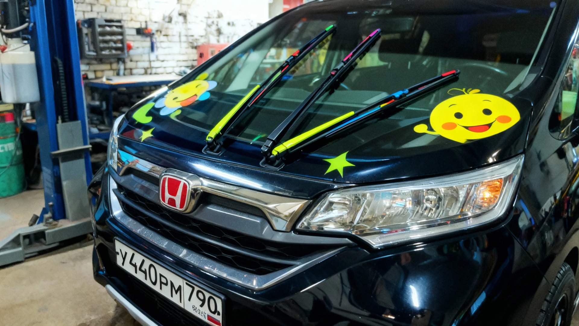 Зазоры с данной размерностью щёток везде отличные, ничего не цепляет и не задевает. В оригинале идёт 650 и 375, в данном выборе 650 и 380, т.е. практически сток-размер, лишь на 2,5мм увеличен боковой вынос с каждой стороны.