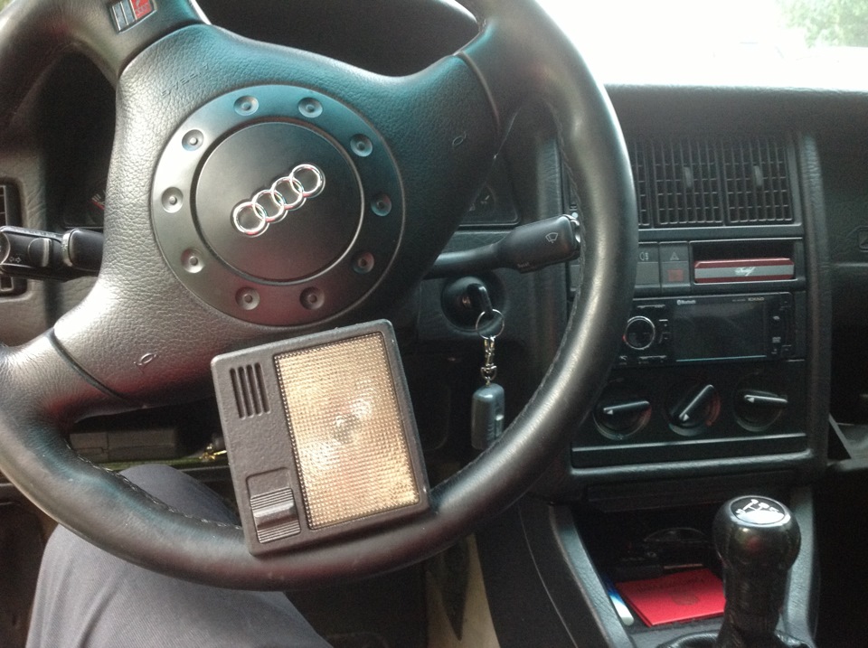 Алькантаровый потолок и черные ручки я поставил давно а вот плафон не ставил т.к. когда мне его красили в черный цвет как и потолочные ручки сломали переключатель и мне его ставить не хотелось но и штатного цвета тоже не хочу. Мне надоела дырка в потолке и я пока не подключая поставил этот. Надо купить новый снова покрасить и переставить)))