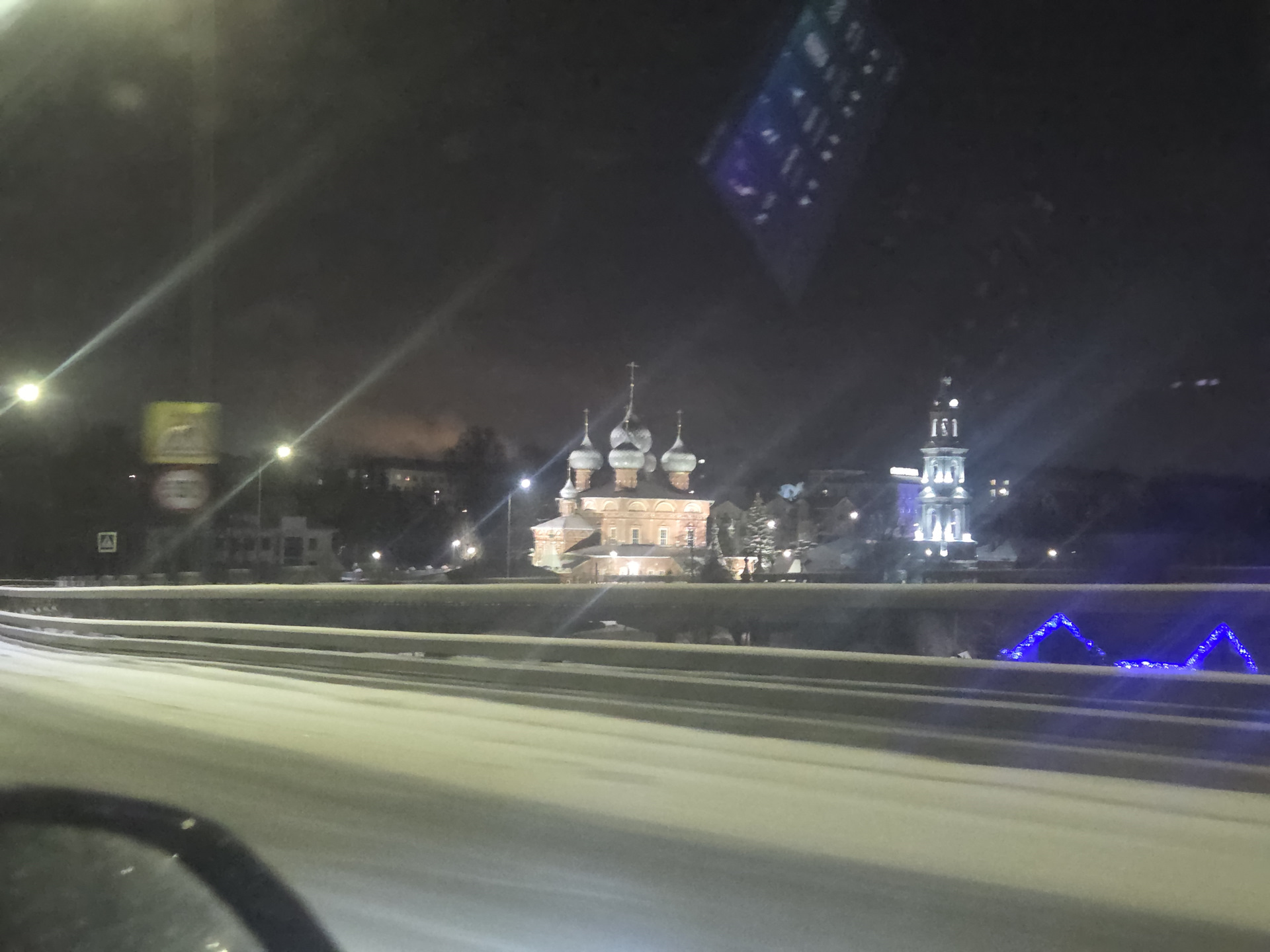 Дальше путь лёг через Сергиев Посад, затем Переславль-Залесский и Ростов Великий 🏘️. Города идут один за другим, дорога читается легко, несмотря на то, что что до Ярославля, что после него трасса была довольно скользкой ❄️, но на шипованной резине машина уверенно держится на дороге 🚗.