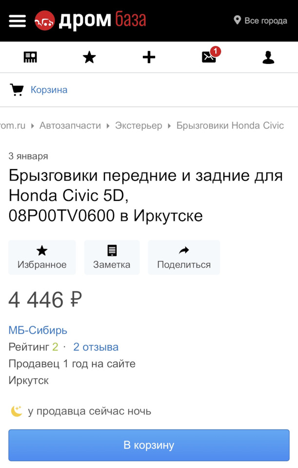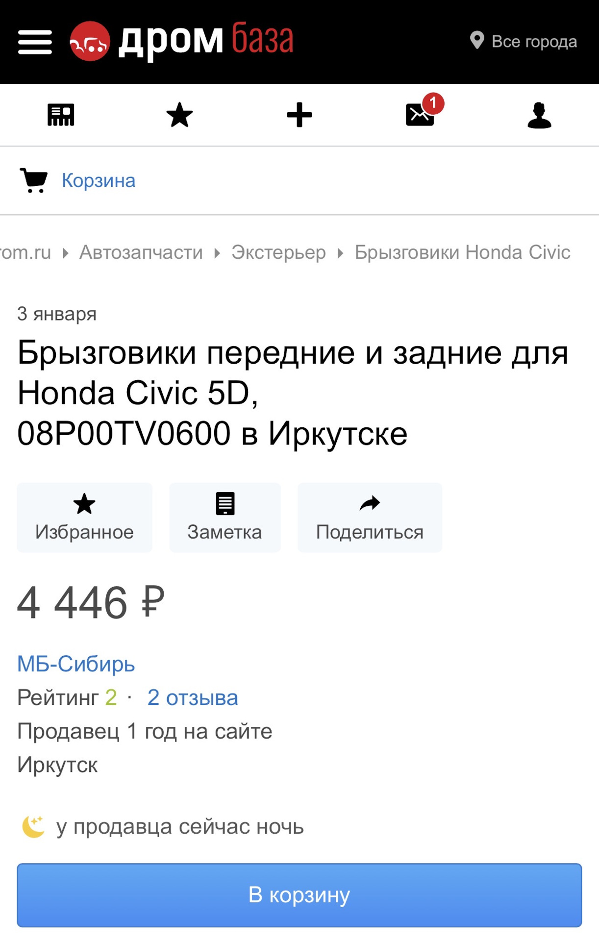 Всем привет Друзья! До дтп стояли брызговики, но к сожалению, левый оторвало вместе с подкрылком и серпом. В наличии есть но ценник конский, идут комплектом 4шт. наши барыги перед продажей делают три оборота вокруг Земли!) Серпы поставил новые в круг, решил поискать именно оригинал, и как говорится кто ищет-тот всегда найдет, нашел оригинал 08P00-TV0-600 на дроме, по отличной цене 3990₽ комплект в Новосибе! Списался, оплатил и вот уже пру в СДЭК. Благодарю sun_master_honda за Порядочность и оперативную отправку!