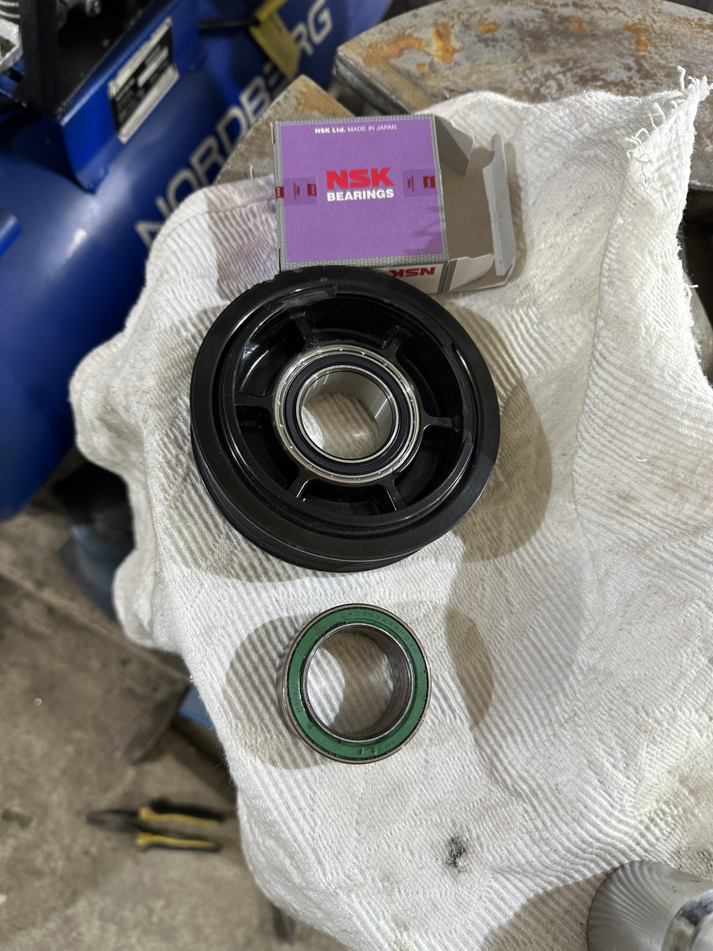 Заменил подшипник на муфте кондиционера. Шумел достаточно сильно из-за высохшей смазки. Заводской был установлен koyo, заменил на nsk.