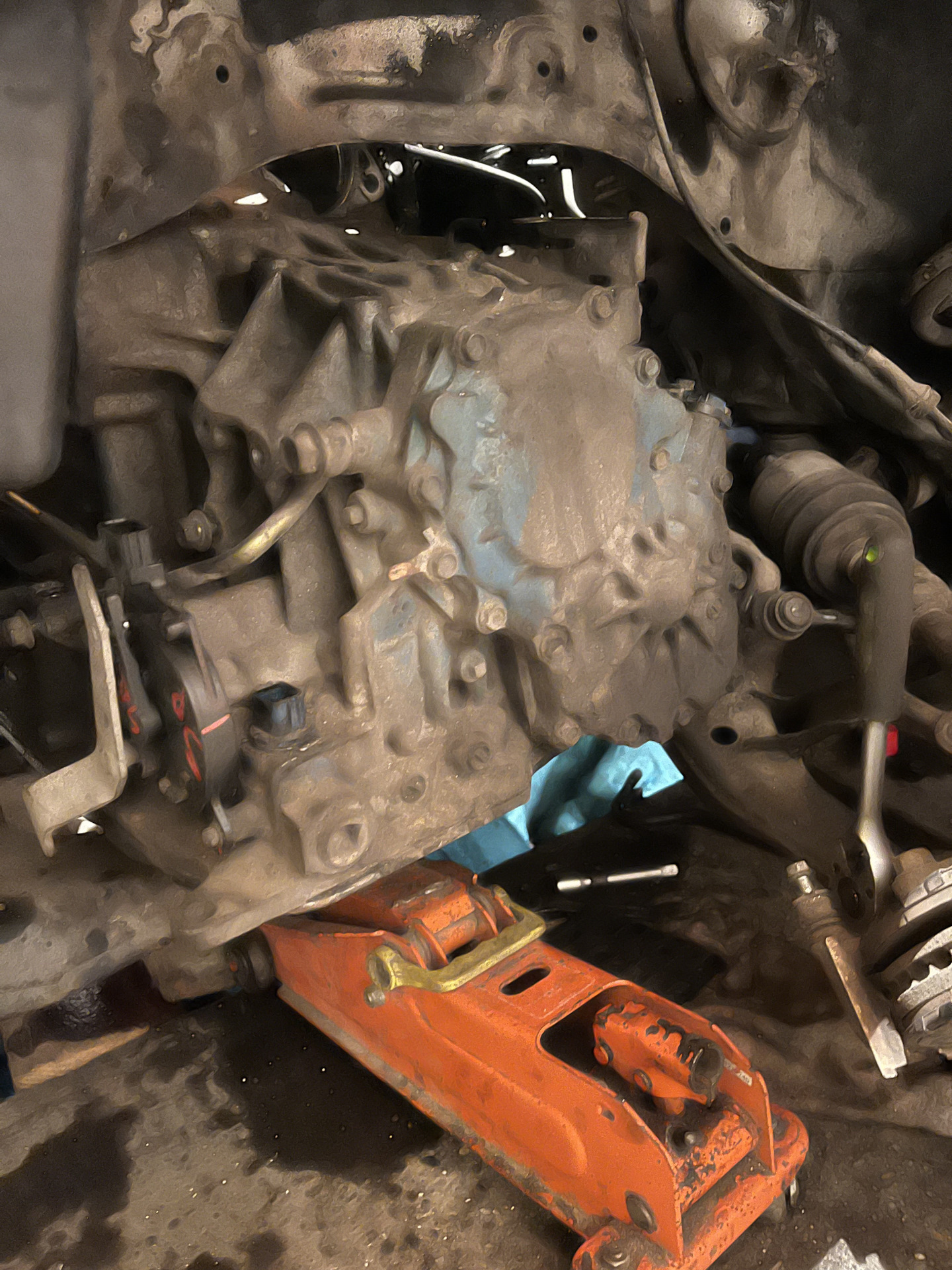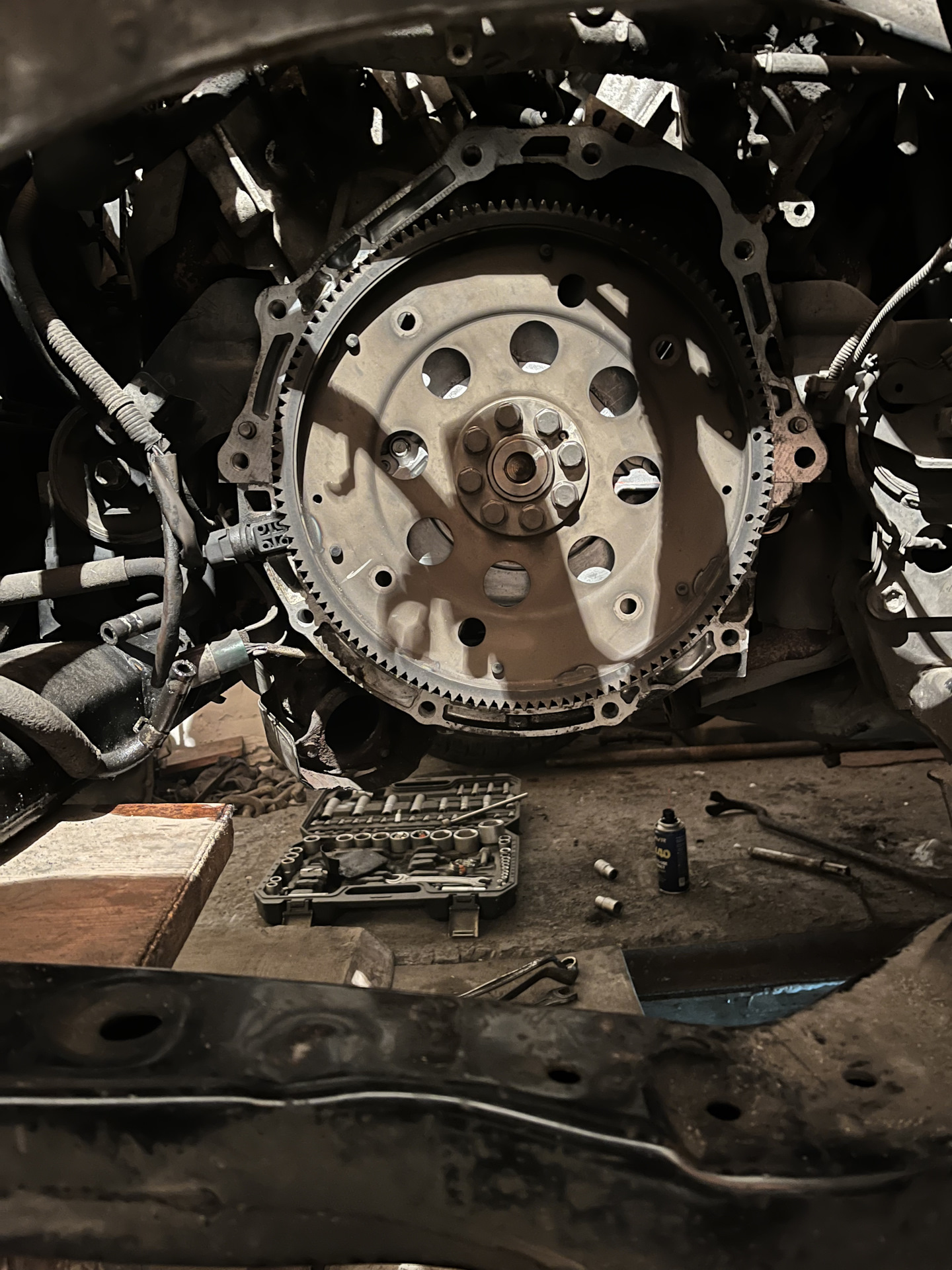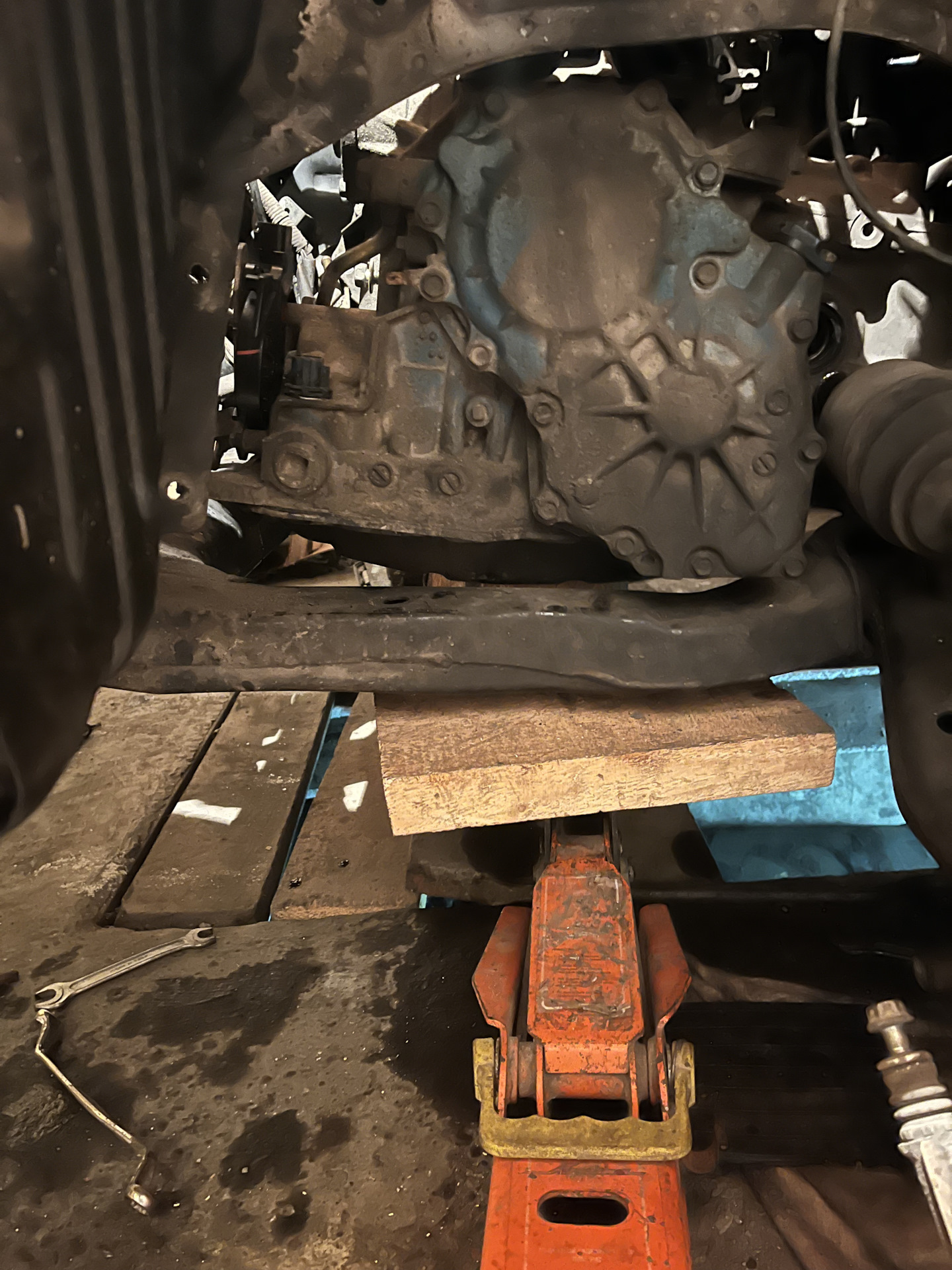 Доброго время суток, по итогу всех манипуляций со старой коробкой так не чего и не помогло, было принято решение менять саму Акпп. Нашёл контракт с заявленным пробегом якобы в 94000 по Японии «остаётся только надеяться что это так» обошлась она мне в 42тыщи наших тугриков, это ещё не сама большая цена на наши коробки, по сути из всех вариантов где я мог сам её притащить эта была самая дешевая) к ней же были заказаны все сальники бублика, привода, коренной, фильтр с прокладкой, примерно обошлись в районе 6к ну и плюс масло 8к и того 56к. Масло взял zic atf. Ставил своими силами первый и последний раз. Больше всего намучился с подрамником, что бы его полностью не снимать опускал одну строну и еле как пропихивал каробас. Для удобства снимал карманчик со шлицов от рейки.