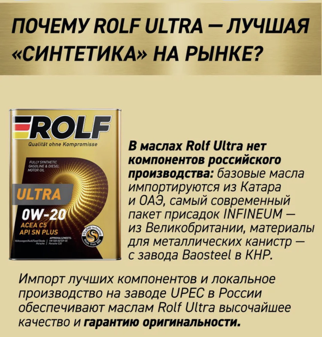 Какая то дискредитация России, этот рольф пишет что их масло лучшее- потому что нет компонентов Российских производств, типо по их мнению в России говно выпускают? Так то базы Российских производств в разы лучше, чем у других стран, так как делают из первичного сырья — нефти, а не на гидрокрекинге, не на переработке старых масел