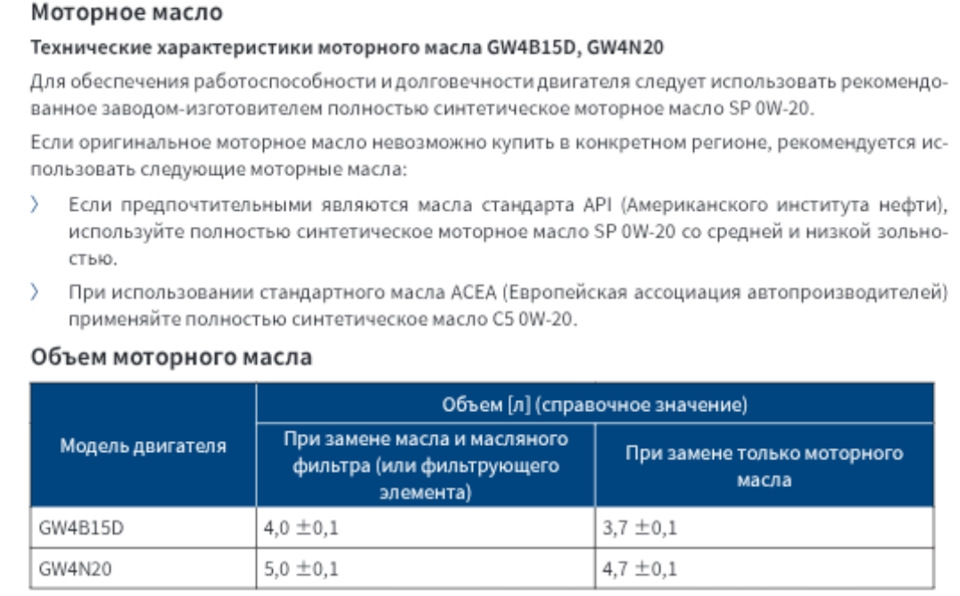 Вот тут полный расклад (ну или почти полный): Системный анализ требований к моторному маслу для двигателя GWM GW4N20