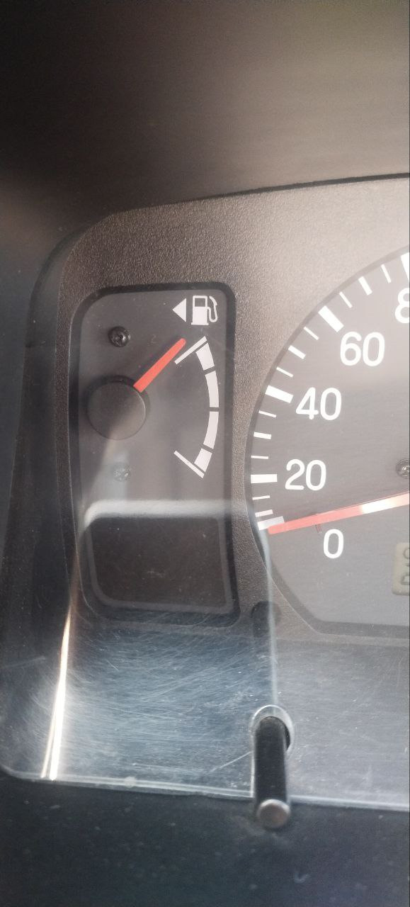 Вот так стоит стрелка пока в баке не останется 75л, потом всё штатно.