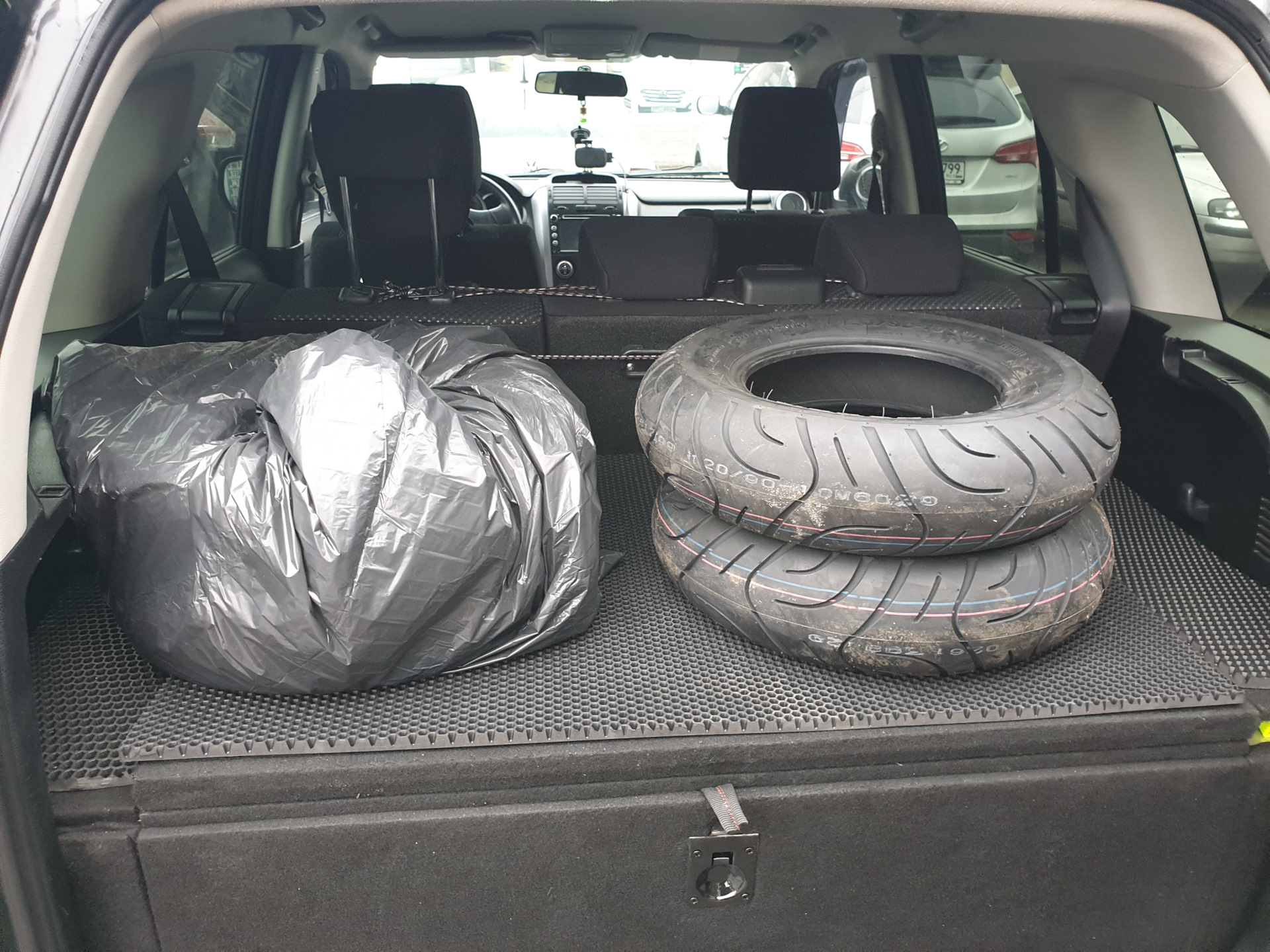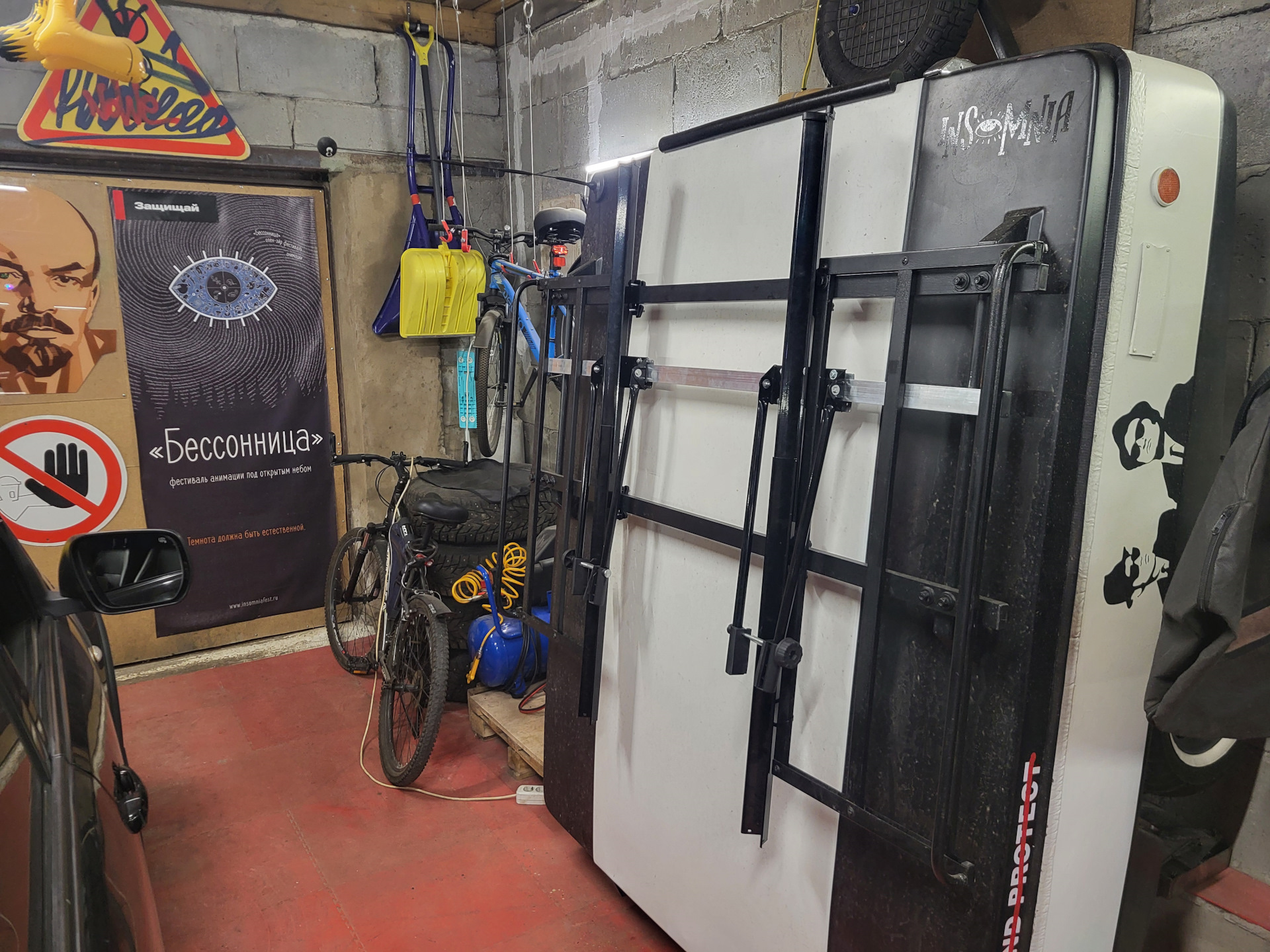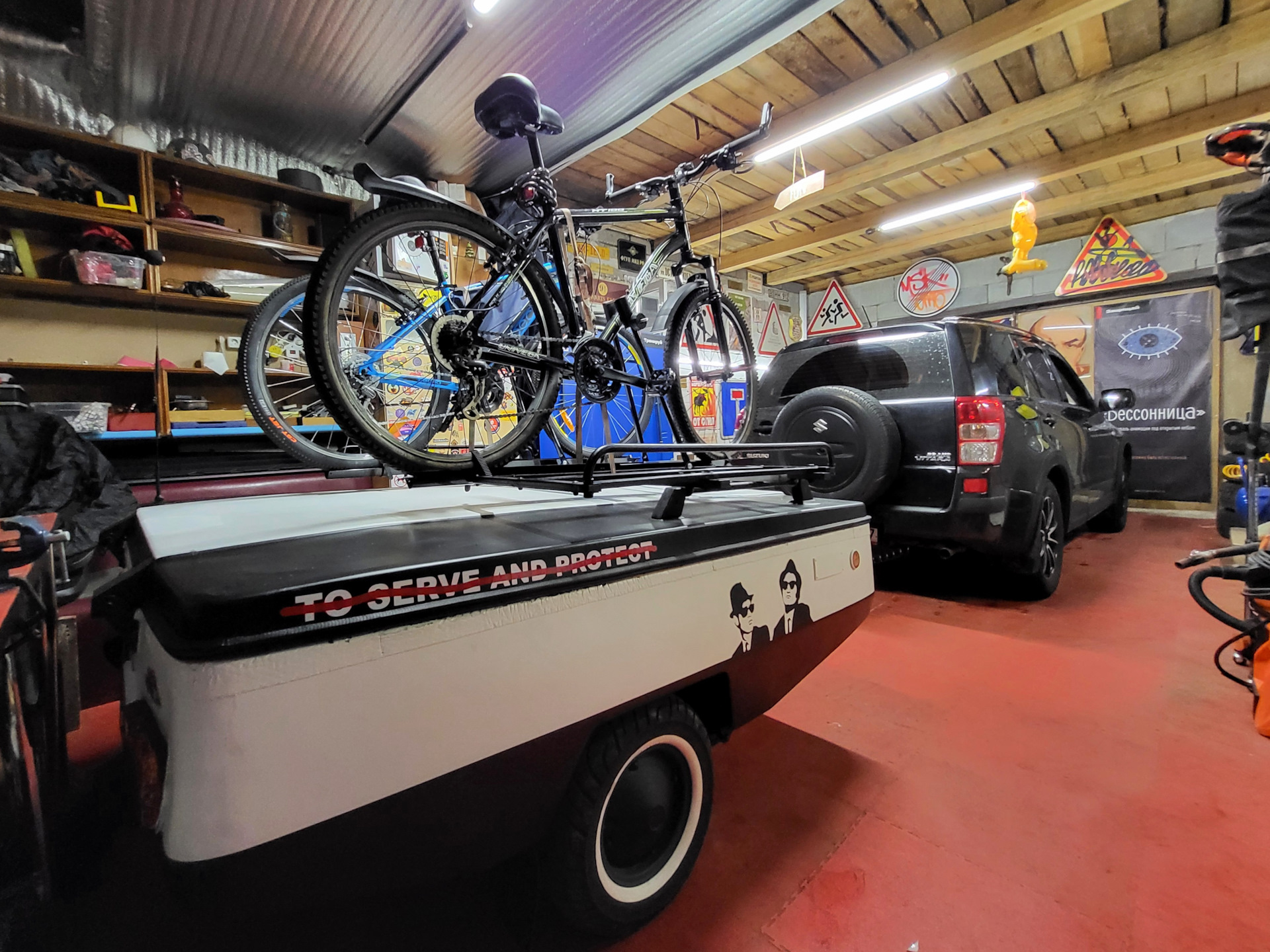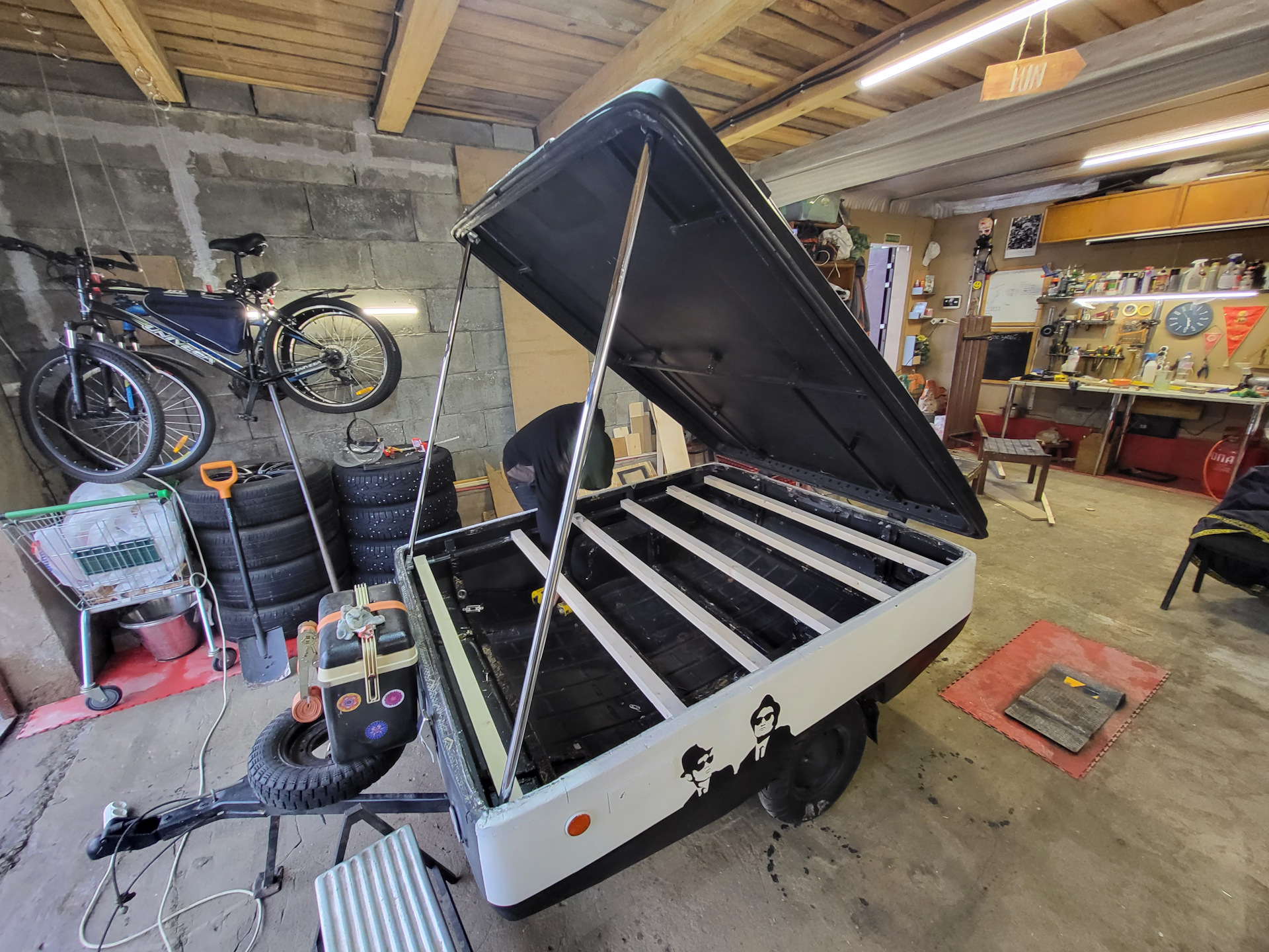 Багажник оказался не лишним аксессуаром. К нему отлично прикрутились велокрепления (все поперечины из алюминия. Иначе крышку не поднять). Не смог пройти мимо вайтволов (пусть не по фильму, но по стилистике)