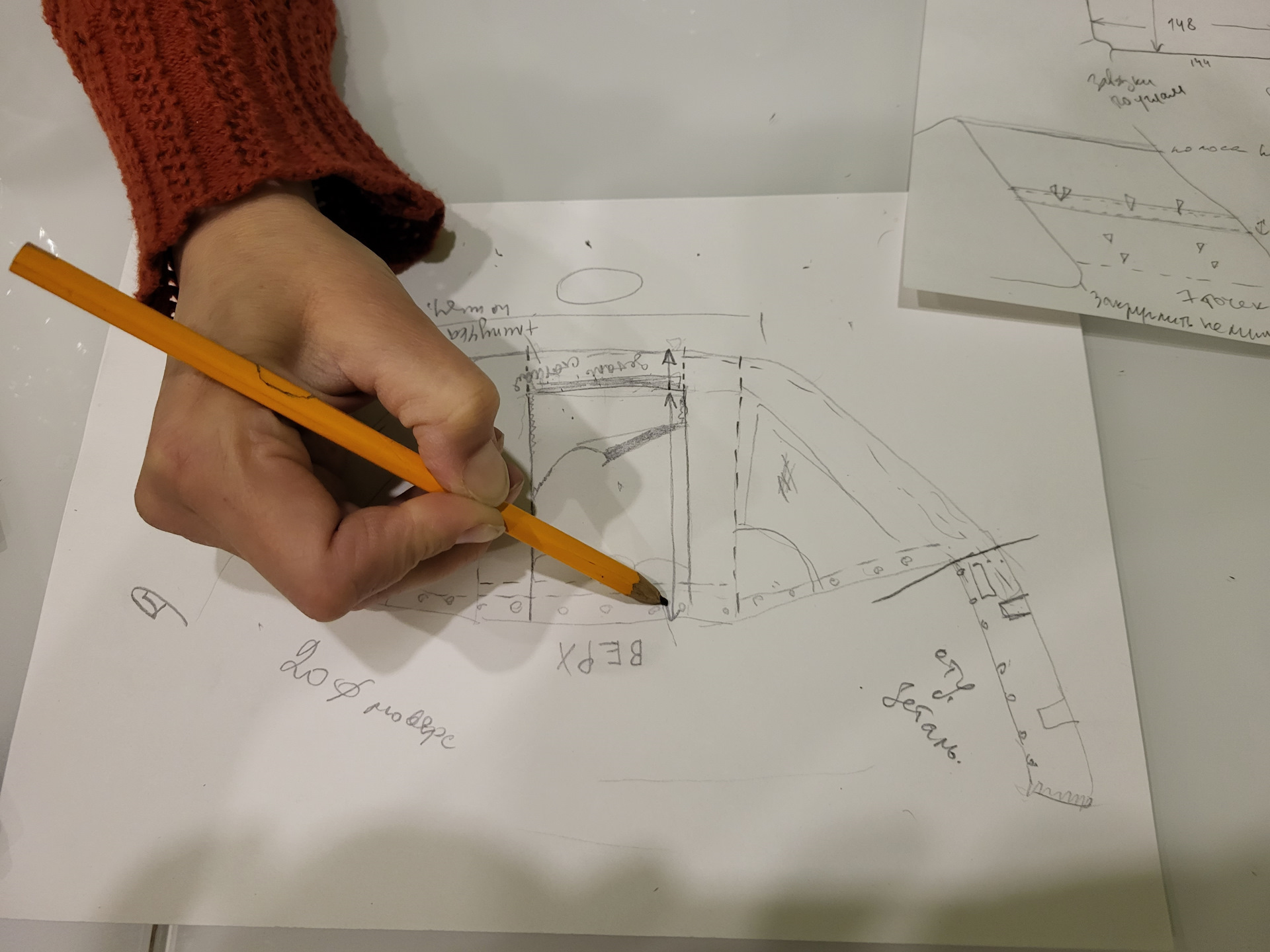 Если бы у меня в добрых знакомых не было такой замечательной швеи, я бы ни за что не рискнул всем этим заниматься. Мари, низкий поклон! Чертим чертеж)