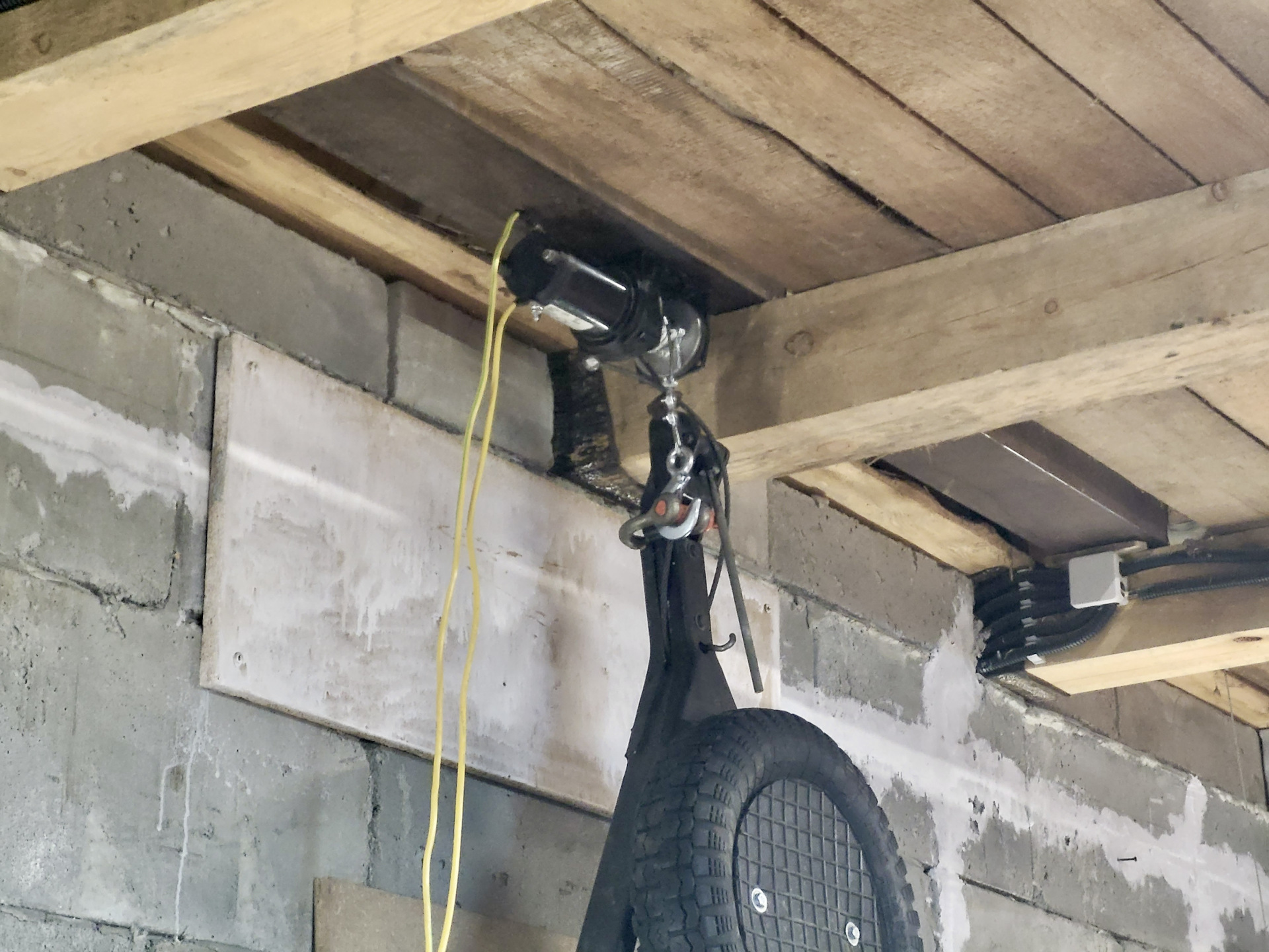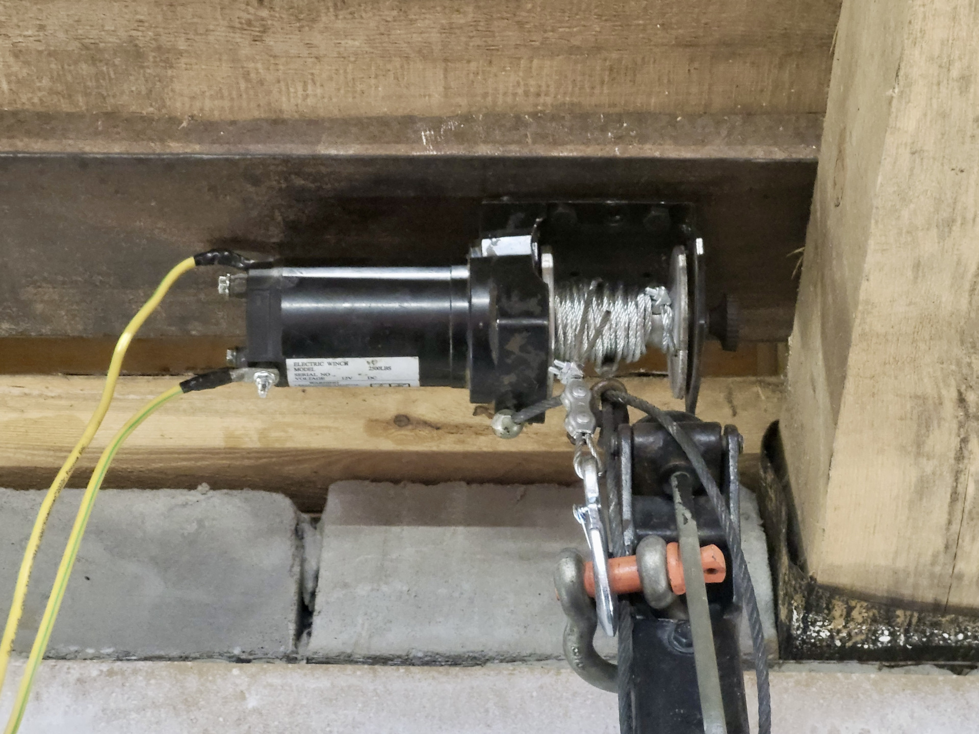 Поднимать и опускать Скиф руками можно было только вдвоем. Не дело. Нужна автоматизация. Была добыта электрическая лебедка 12v для квадроцикла на 2500lbs (работа от аккумулятора автомобиля) + сделана платформа из металла 3мм на колесиках для комфортного затягивания прицепа в вертикальное положение. Фото со старым дышлом