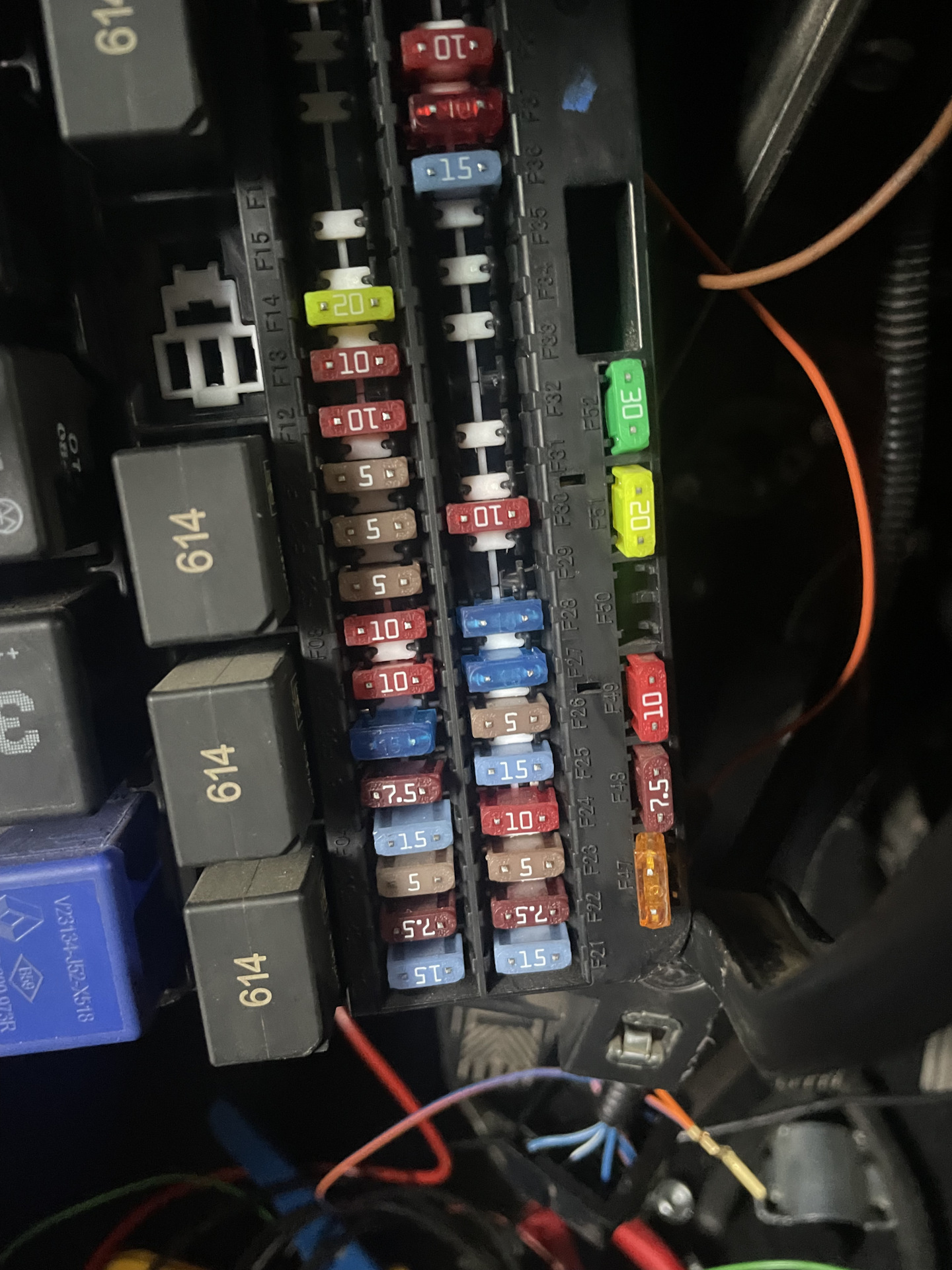 Из особенностей у меня переходная гранта 2018 года с новым монтажным блоком, поэтому +12в для блока управления усилителем брал с предохранителя ф5 на 7.5 ампер. В схемах интернета я этого не нашел, а нашел в руководстве по эксплуатации.