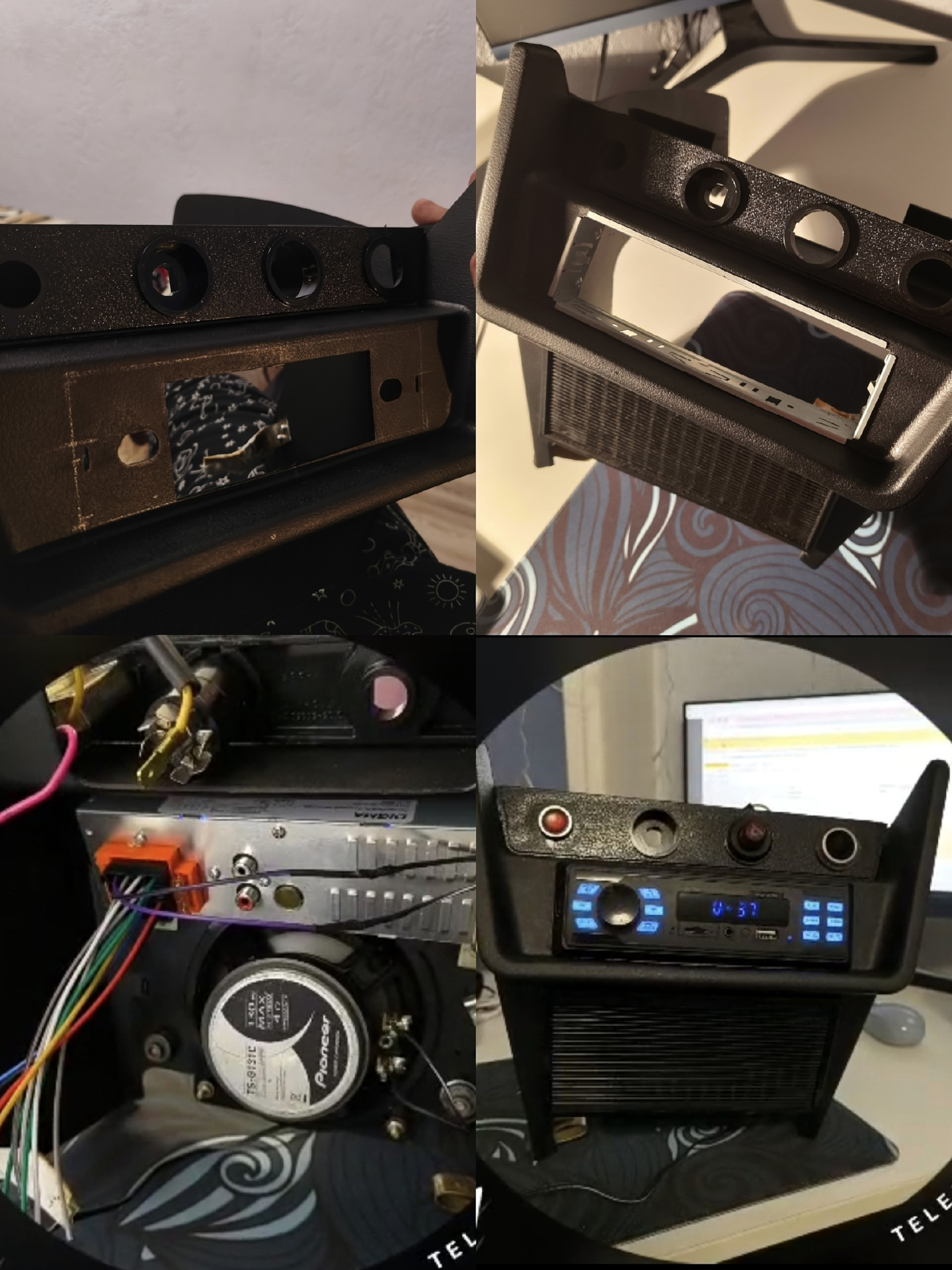 Заказываю на том же озоне новую бороду за 1200руб. и уже аккуратно выпиливаю отверстие под современный приёмник. Так же меняю советский рассыпавшийся динамик. Качество новой консоли — понравилось.