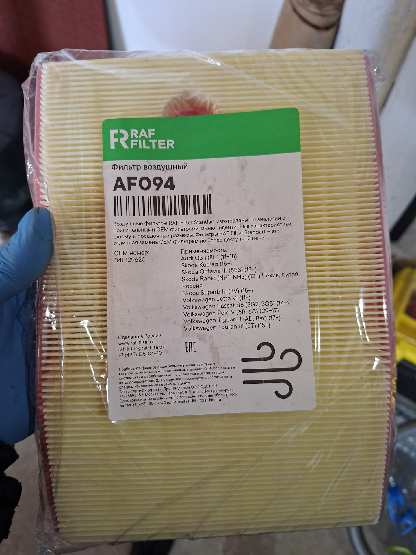 3. Воздушный фильтр двигателя. Изначально я не хотел покупать фильтр RAF FILTER AF094, связи с её говенной упаковкой, но подумал, придёт помятый то просто откажусь от оплаты. Как итог, привезли в целом состоянии. Сам фильтр по качеству не плохой
