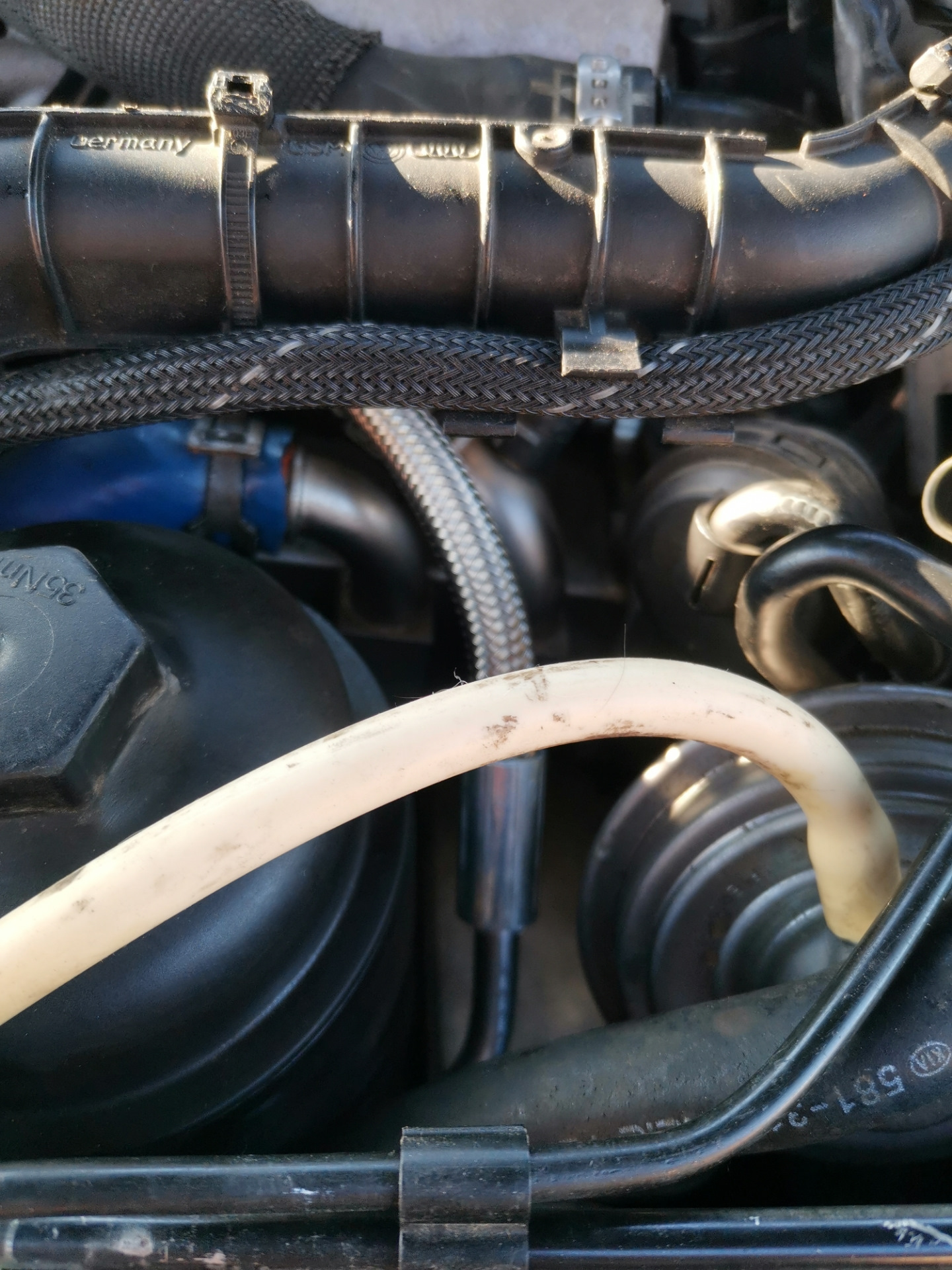 Доброго всем, дождался тёплой погоды, для снятия трубки подачи масла на турбину, так как потеки масла были видны не вооруженным глазом.