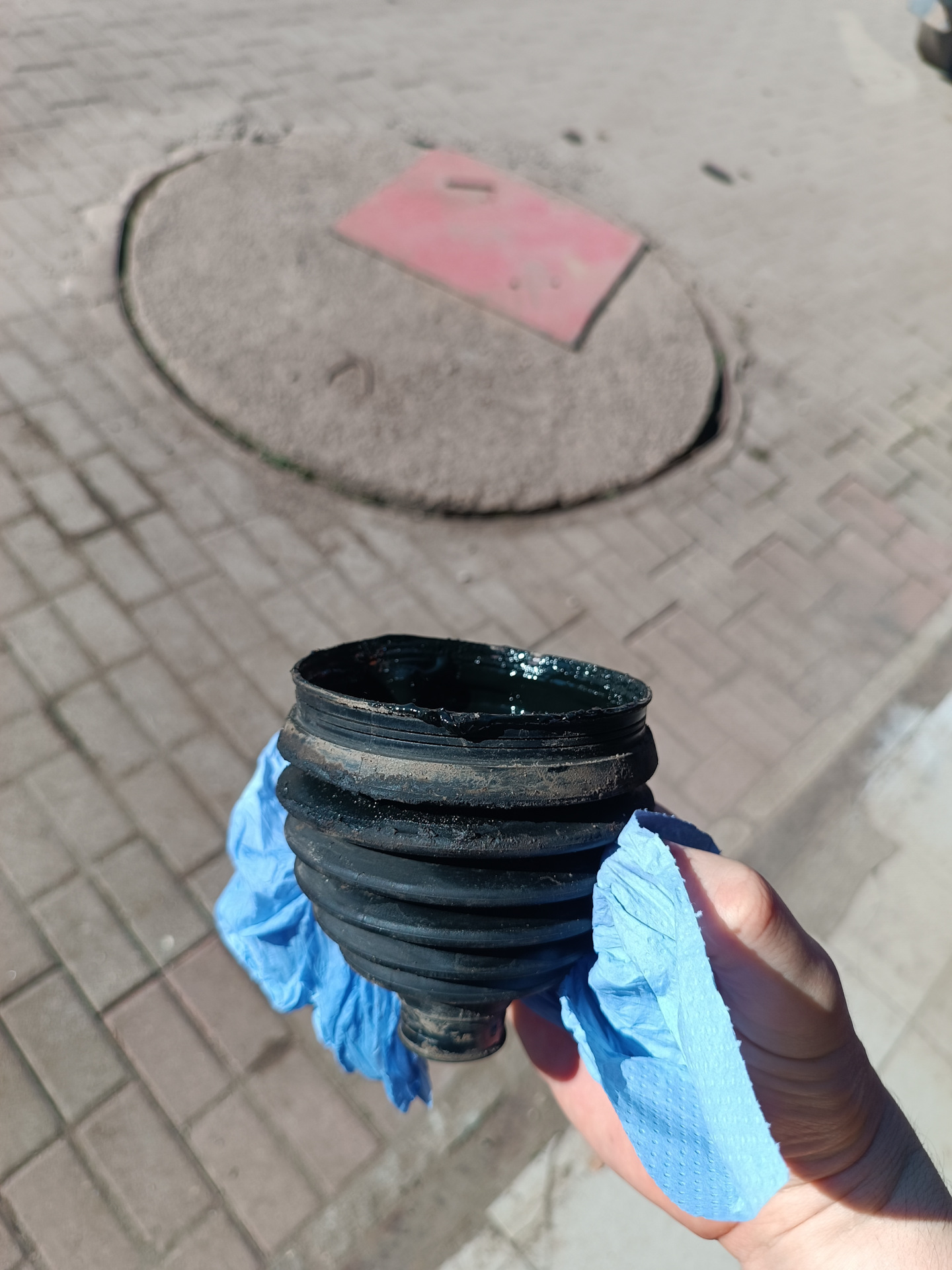 Осенью при осмотре заметил смазку на подвеске . Присмотрелся, смазка из шруса . Повредился видимо, при ремонте подвески.