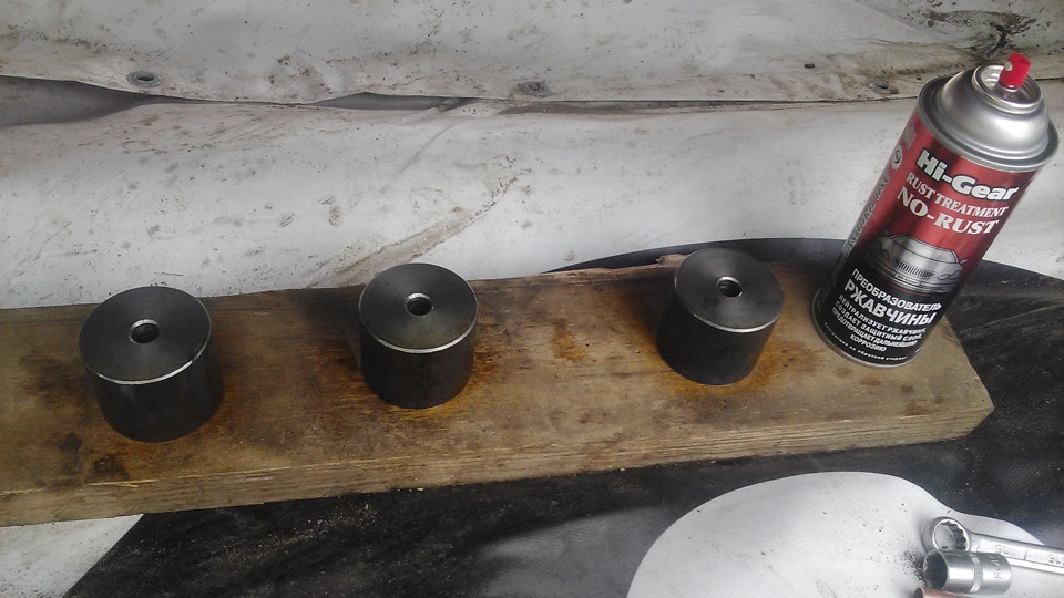 — перед установкой проставок из железа-необходимо обработать их преобразователем ржавчины(я использовал-Хай Гир)