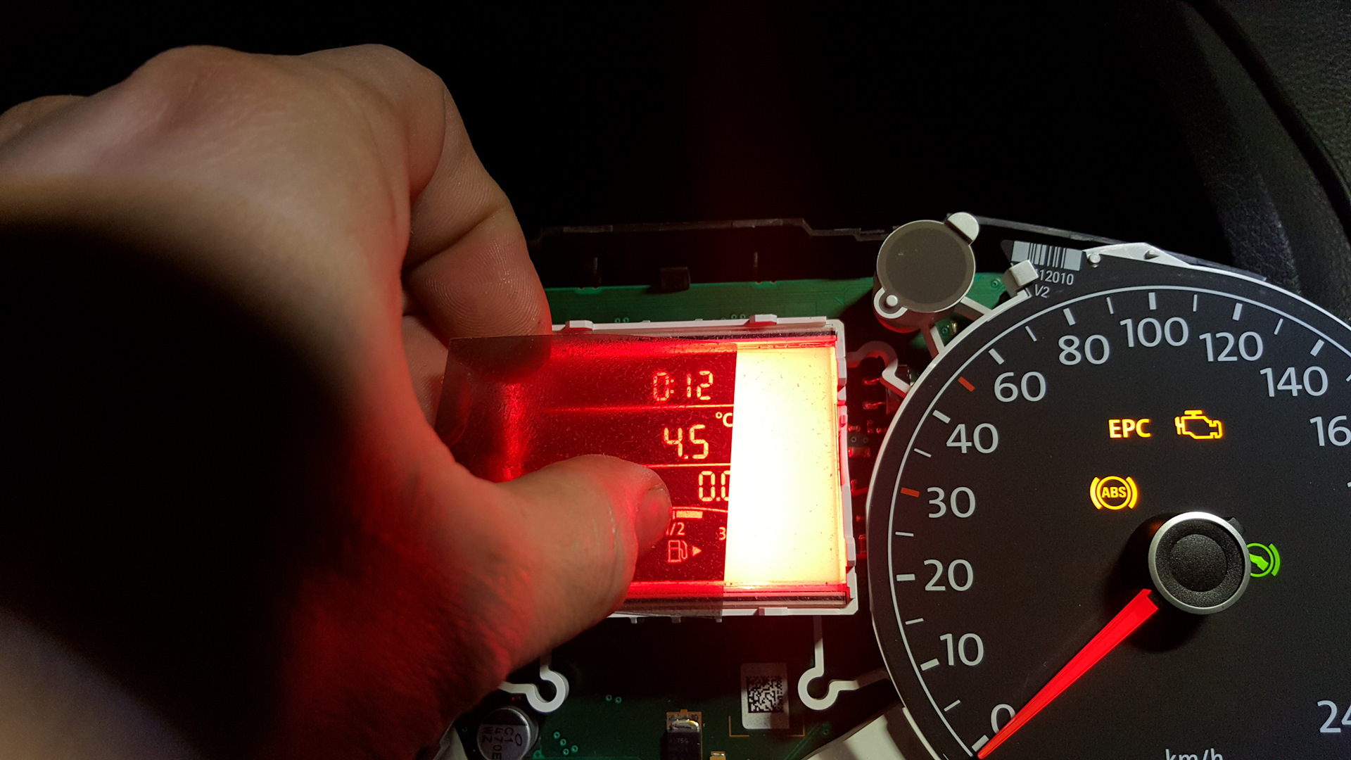 Я сейчас разбираю свою приборку с Поло. Синий цвет только из-за цвета самого жидкокристалического экрана. Когда его просвечиваешь на свет, он действительно кажется синим. Пробую его затонировать тонировочной пленкой. Покажу что получится, скоро…