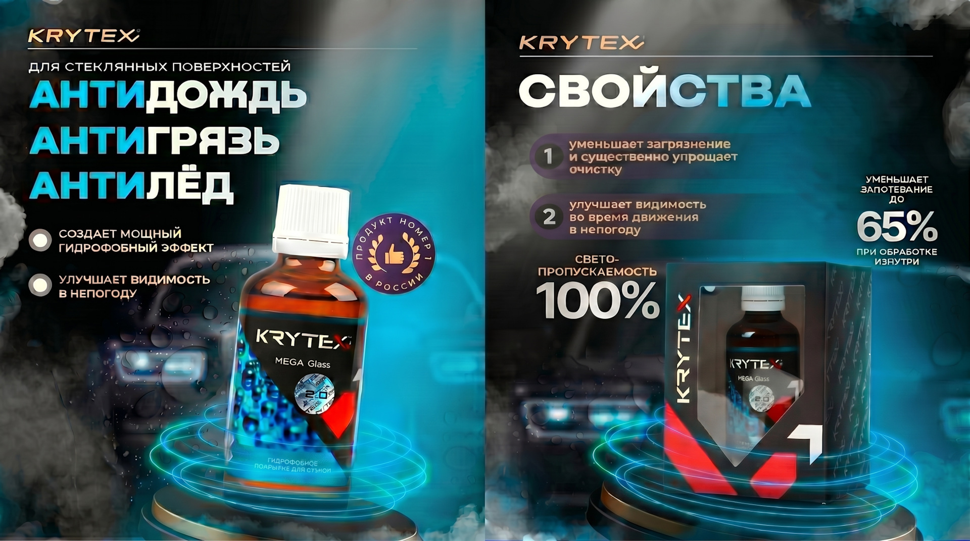 Я использую KRYTEX MEGA GLASS 2.0 — состав, который хорошо себя зарекомендовал ☝️