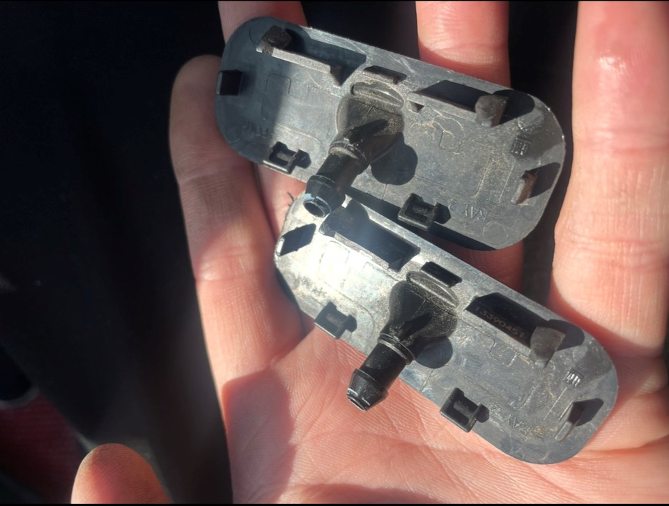 почему я пришел к данному изменению во-первых струйные форсунки очень много жидкости уходит, во-вторых быстро заканчивается эти 4 литра. А веерные на все стекло подают жидкость, так ещё при скорости 120-150 их не сдует потоком воздуха и распыляет на все лобовое стекло и этих 4 литра хватает достаточно на много это очень радует. Регулировать ничего не нужно под ковырнул достал новые поставил защелкнул.