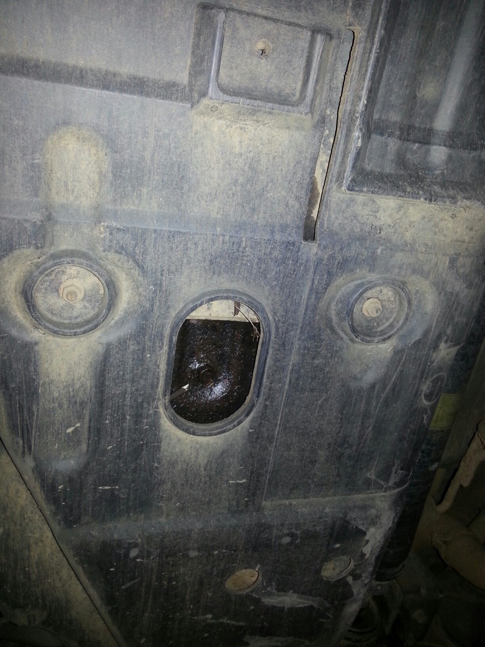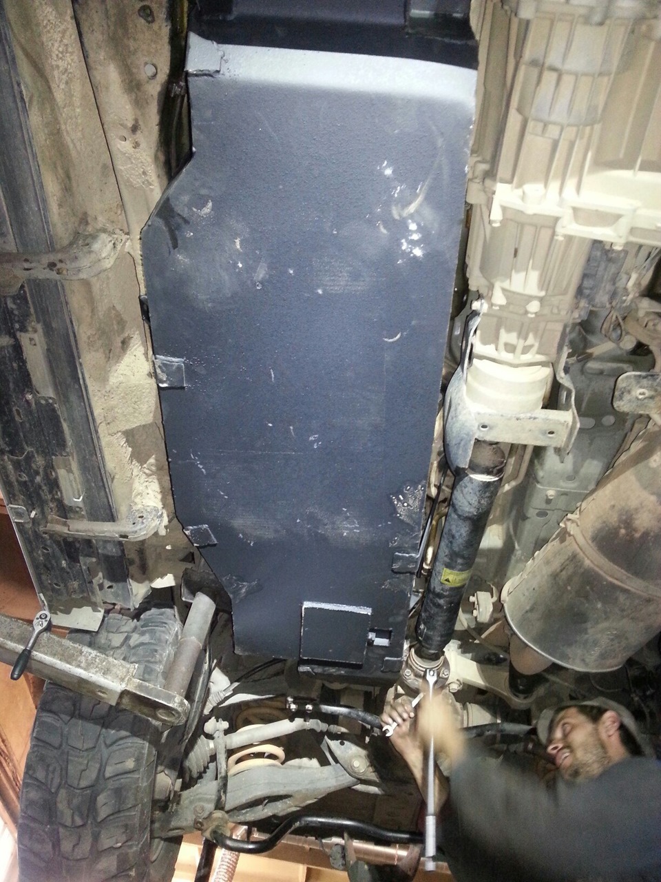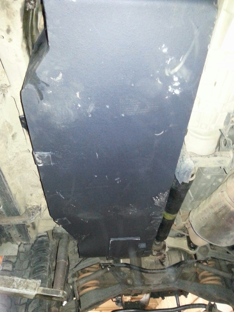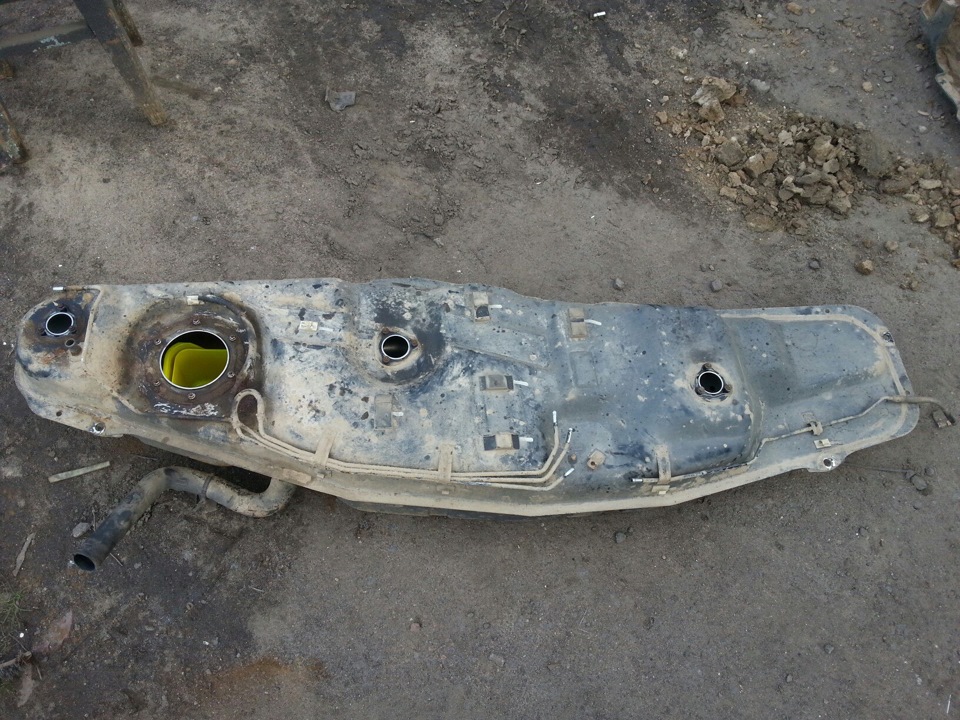 Фото отрезанной композитки нет. Не сфоткал, а под машину лезть щас не хочется. От малой части, которая прикрывает раздатку отрезан один угол, который заходит на новый бак
