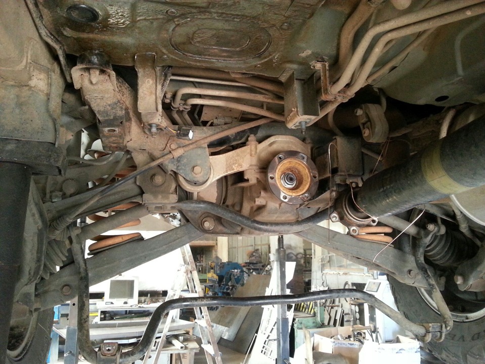 Затем начали откручивать задний стабилизатор. Обломили один болт крепления втулки стабилизатора. Они сказали, что только у одного П4 открутился стабилизатор нормально. У всех остальных ОБЯЗАТЕЛЬНО парочка болтов обламывается. Приходится высверливать. Они чуть ли не ставки ставили сколько болтов сломают)))