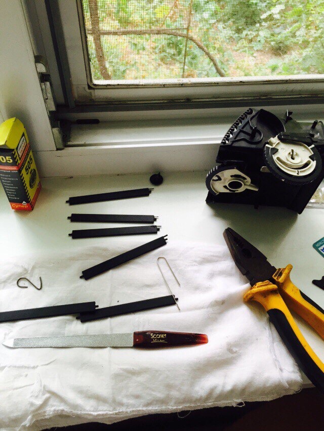 Вот и добрались у меня руки и до них. Честно сказать намудохался долго нагревал скрепку вставлял в поломаную шторку, потом подпиливал, НО всё равно получилось не очень. Но хоть теперь стоят более имение ровно =)