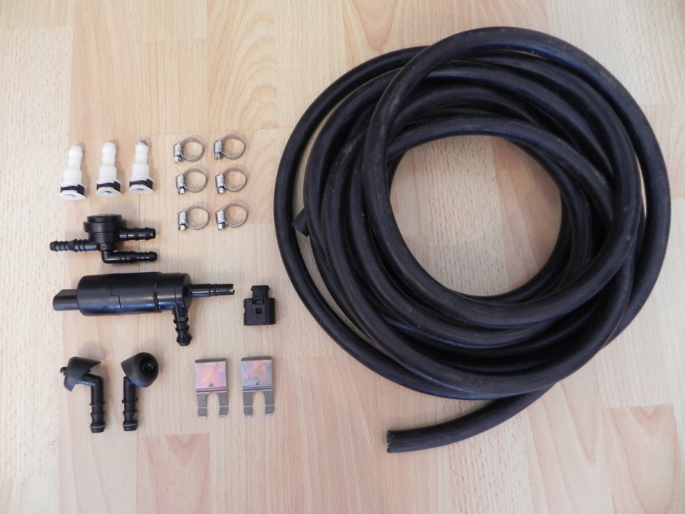 Собрал полный комплект системы фароомывателя. Точнее даже 2 комплекта получилось. Комплект №1 — Cabrio
