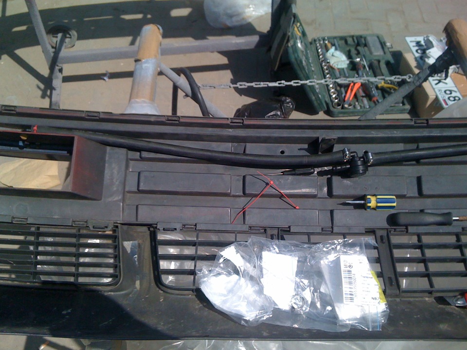 у тебя стоит оригинал система которая шла до 94 года на штатный бампер и бампер S2… то что на фото это система фароомывателей под рестайлинговый бампер с 97 года.