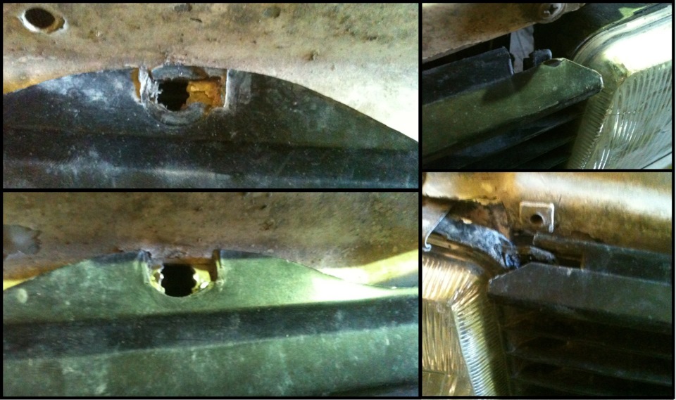 Что было поломано: верхние 2 уха крепления к телевизору, "ус" для крепления к правой фаре, крепеж на левой фаре под решетку радиатора, 3 из 6 крюков внизу решетки.