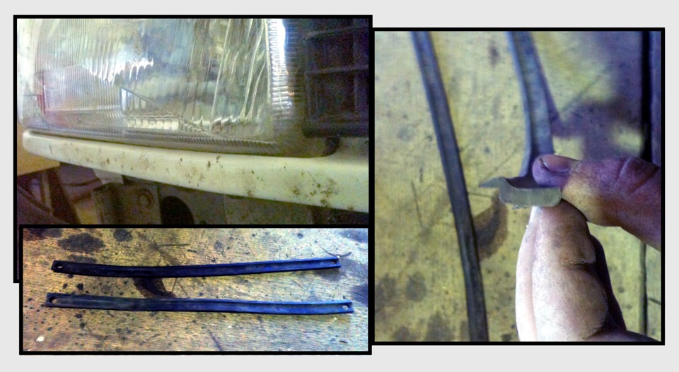 Внизу фото какой была морда раньше (извините за качество — других фото нет) и какой морда стала теперь (две фото сверху по бокам). Теперь нужна резинка, закрывающая пространство между капотом и фарами и решеткой. Кто-то мне ее предлагал да так и пропал. Отзовись пожалуйста)