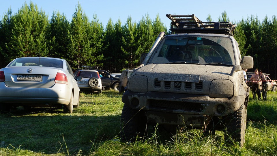В 7:00 подъем, нужно еще раз проверить все ли взяли, "упаковать" сидения в чехлы от грязи, "выкинуть" на поляне все не нужное для рейда, получить номера и пройти тех.комиссию… и совсем неожиданно для меня — дать интерьвю :)