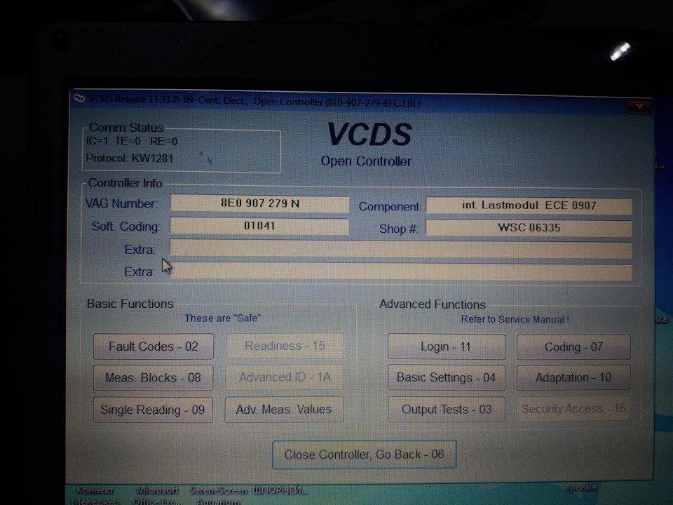 Те кто решится на такое же, сначала могут проверить свой блок центр.электроники с помощью VAG-COM. Если он с буквой F, то успех. Если же нет, то придется его где-то доставать. Потому что нужен именно блок с номером …279 F! Другие работать не будут. У меня был с …279 B, что тоже, как и F-модуль является High Line версией. Однако с моим модулем FH/CH не работал!