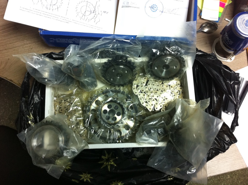 Все доброго дня! Вчера наконец-то забрал комплект, сразу скажу, что покупал на всякий случай. Хотя недавно из любопытства снял клапанную крышку))) Ну очень хотелось посмотреть состояние цепи (хотябы верхней), башмака натяжителя- посмотрел… Не понравилось состояние башмака, цепь в него вгрызлась по самые оси…