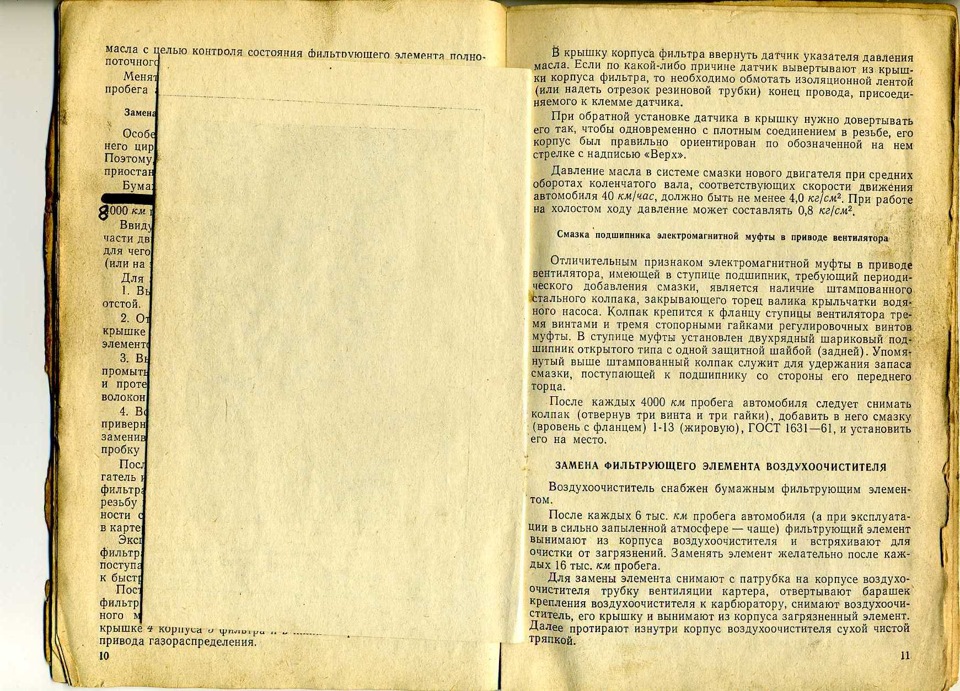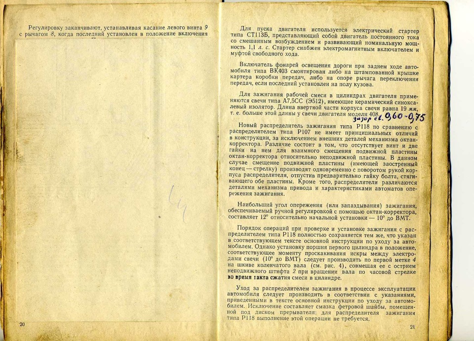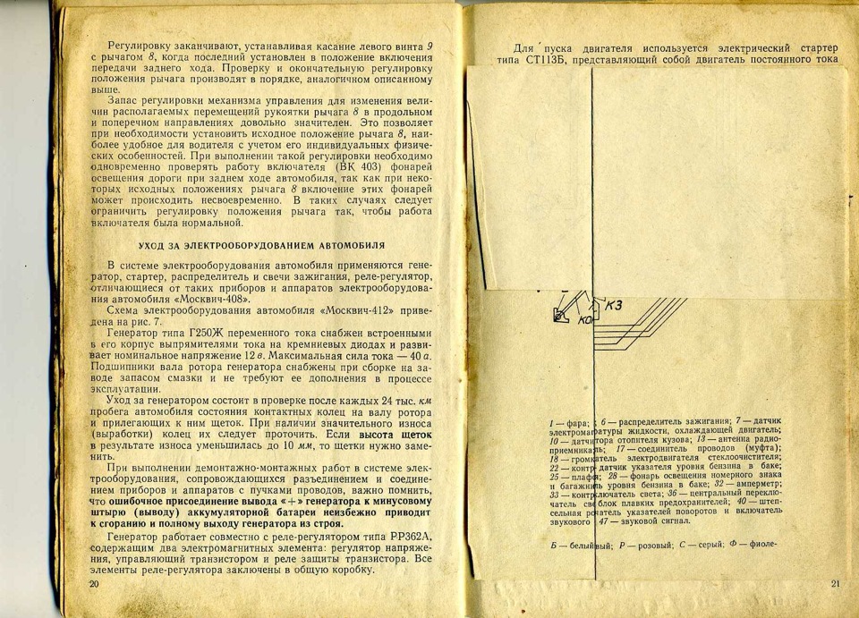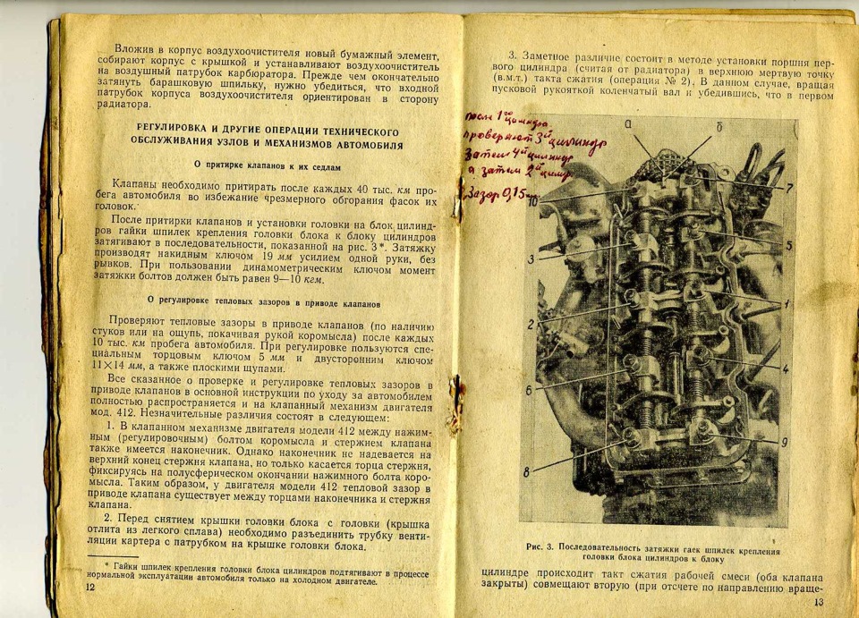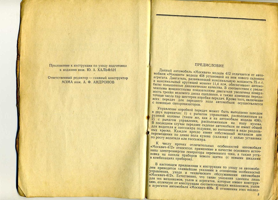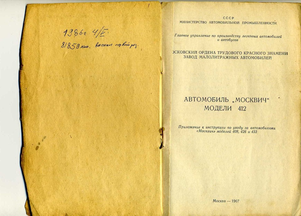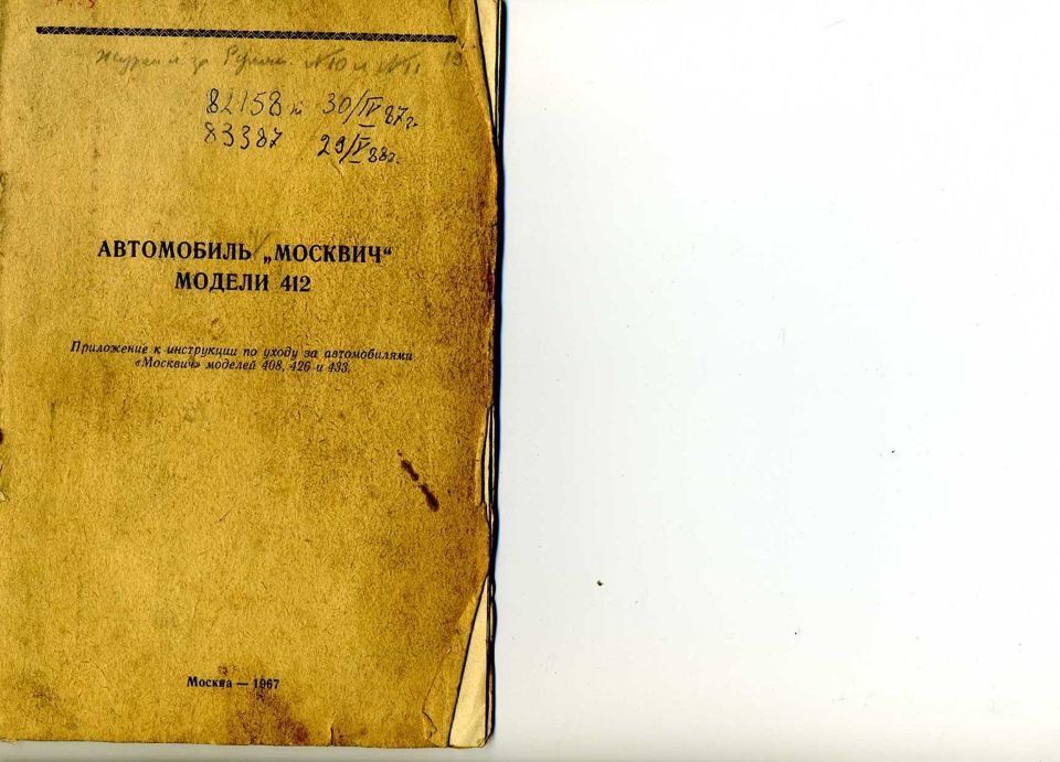 Оригинальная инструкция к 412 москвичу 1967 года (приложение к руководству по эксплуатации М408).