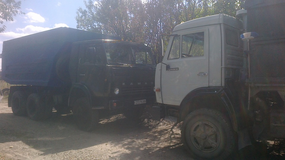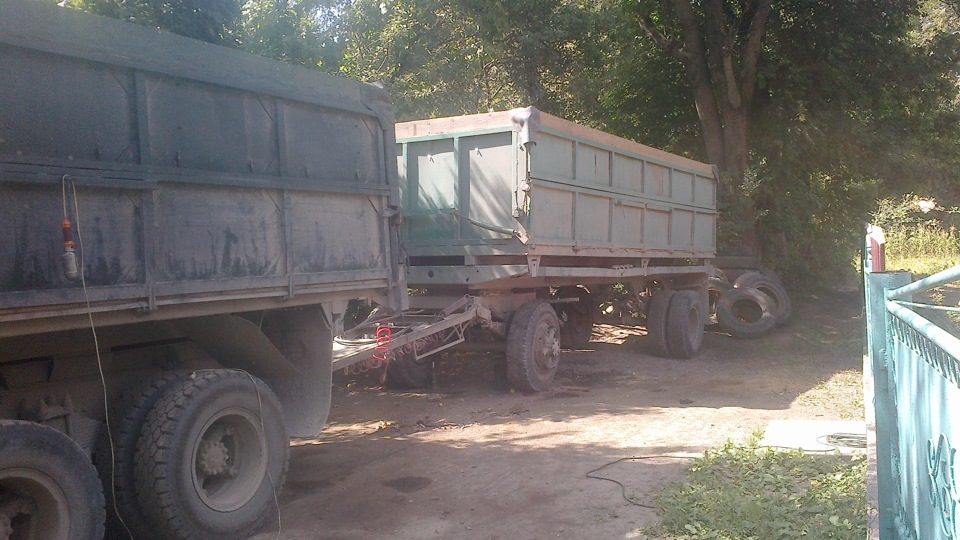 Пошла вибрация на переднее правое колесо решил заменить ступицы с подшипниками, и так несколько фоток автопарка, плюс не видно донора, на прицепе переделал дышель под свой камаз что бы можна было выгружать зерно и не расцепятся, по поводу прицепа уже проверил его на зерне, на машину с прицепом взял 26 тон пшеницы, примерно выходит по подщетам 15 на машину и 11 на прицеп, а так пшеницы постоянно брал 25-25.5 тон