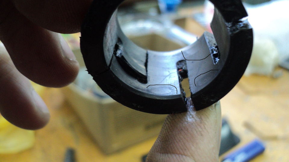 ) согласен, но по технологии эти втулки отливаются из гранулированого капролона. но не фокт что это делают все конторы, которые работают на рынок. я сам точу эти втулки, правда на тойоты) делаю с капролоктана, народ пока не жалуется. на фотках втулки от рав 4, а говно еще то! то что я пометил, места соприкосновения рейки, остальные места, провалы, усадка материала. вот вам и тойота))