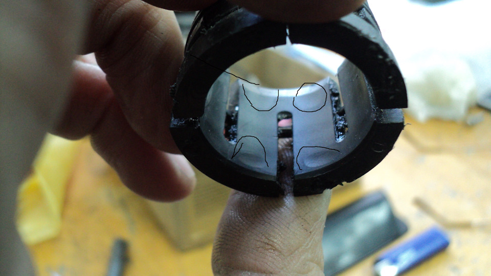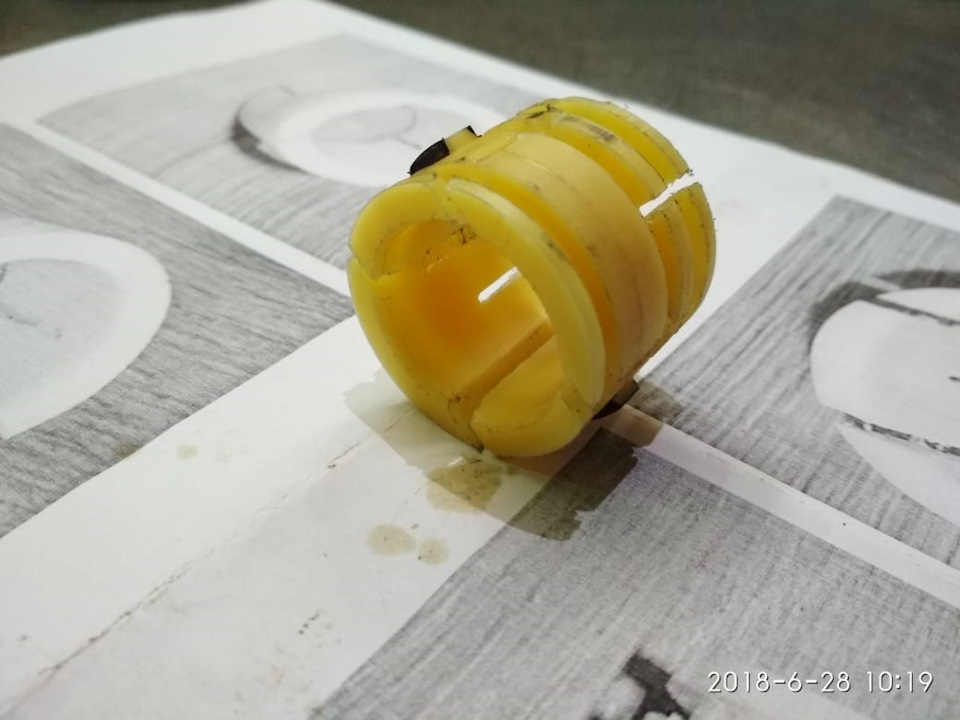 т.е. ты думаешь можно выточить втулку длиной 28,0 мм с внутр. 26,0 мм и внешним 35,0 мм (без пропилов и ушей) и тупо забить её на место заводской? без "ушей" она не вытолкнется со своего места? а то вытолнется и засядет потом на штоке и трында…