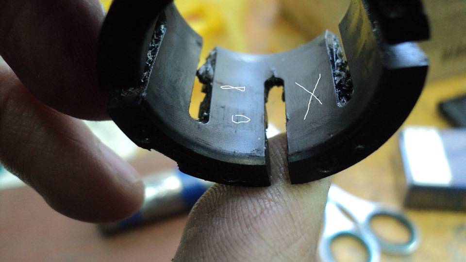 Собирается всё в обратной последовательности с добавлением смазки. Как правило с завода её там нет. Я использую ШРУС РиМетовский. В Ашане за 70 р. за тюбик продаётся. На морозе не дубеет. Можно любую другую смазку, главное чтобы она там была. Капролактановая втулка ставится без резиновых колец, иначе рашпиль зажимать будет.