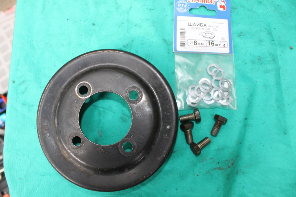 Теперь можно ставить шкив. И новые пружинные (гроверные) шайбы на 8мм.