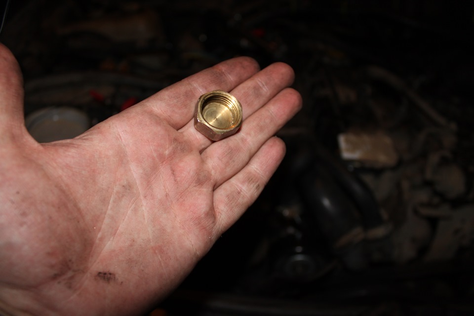 Какой-то умник, трубку, идущую от шланга в помпу, то ли заварил, то ли посадил на холодную сварку. Не поддалась на выкручивание даже после сильного нагрева.