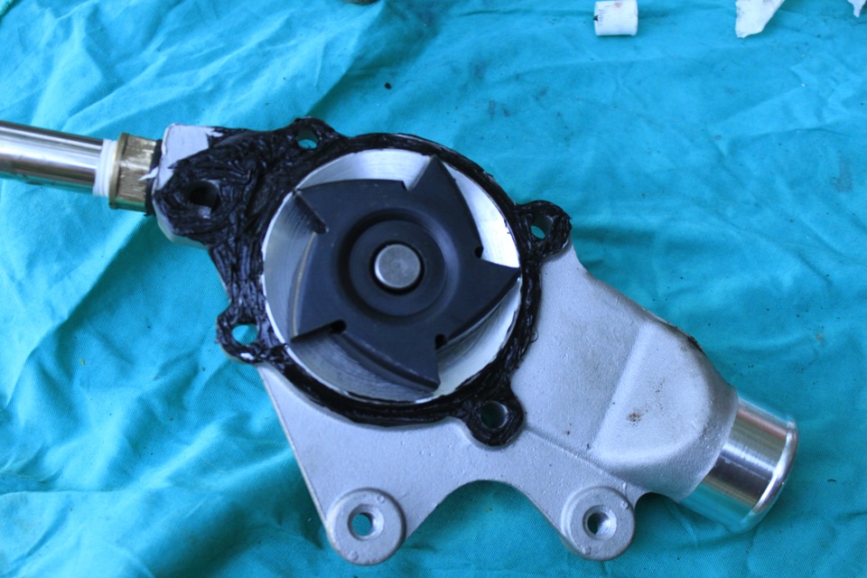 Ремень снят, кронштейн с компрессором кондиционера тоже и, раз пошла такая пьянка, то почему бы не поменять в качестве профилактики водяную помпу?